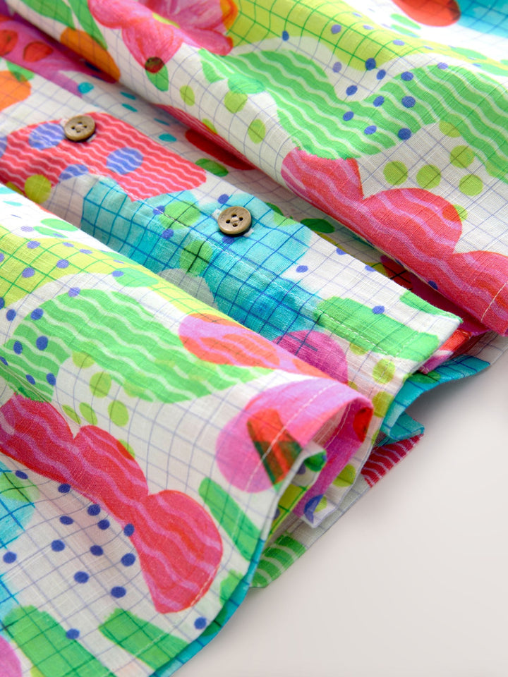 This pretty rainbow doodle button-through dress is easy to wear, with a smart yet casual look that's perfect for parties as well as everyday wear. The dress is made from a cotton-rich blend with added linen for breathability, finished with a cotton lining for a comfortable feel. Cotton-rich blend Added linen Button-up fastening Cotton lining 100% Cotton. Country of Origin: India