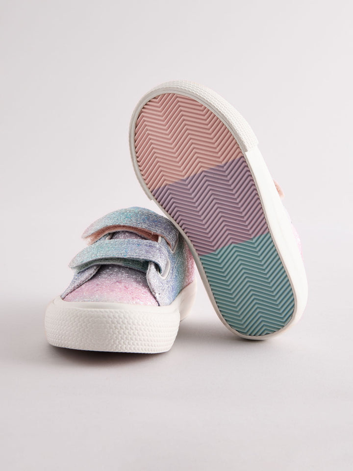 These timeless and easy-to-wear rainbow glitter trainers have a dual touch strap fastening with a synthetic leather upper, featuring a textile lining and a durable slip-resistant sole. Standard (F) fit Dual touch fastened straps Synthetic upper Textile lining Slip-resistant durable sole Upper - Textile, Lining & Sock - Textile, Sole - Other Materials. Country of Origin: Vietnam