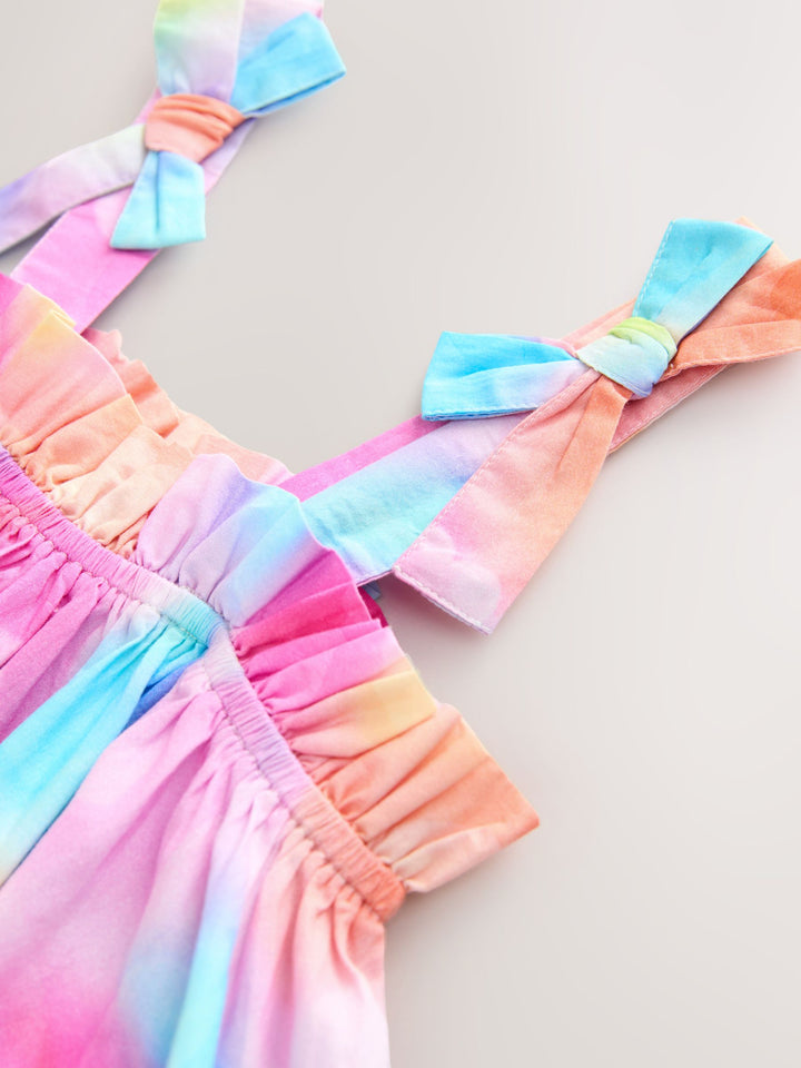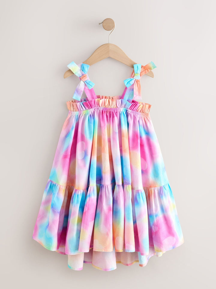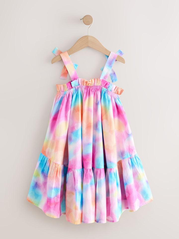 Rainbow Marble Print Bow Strappy Summer Dress (3-16yrs)