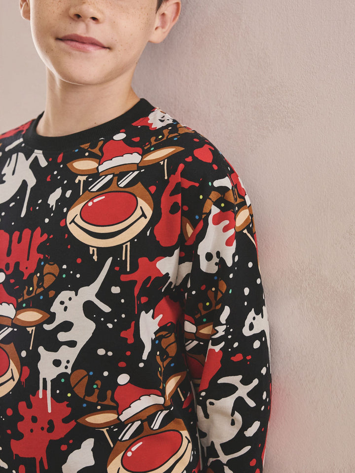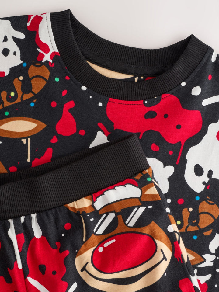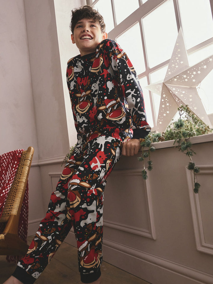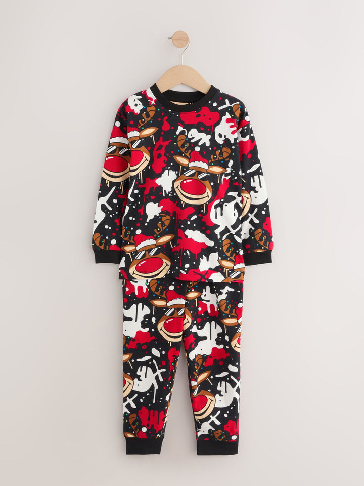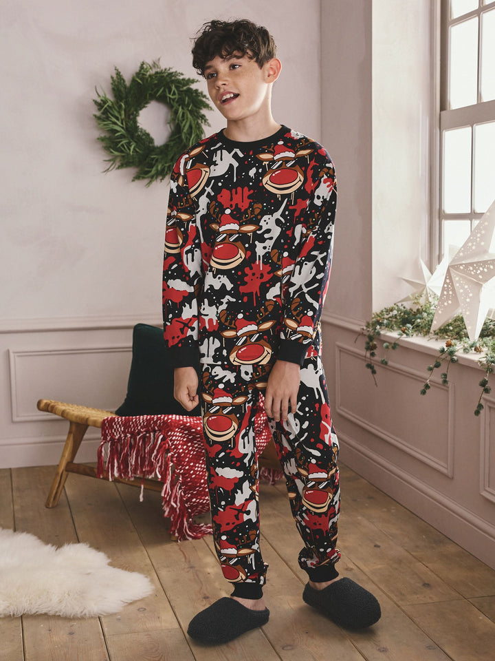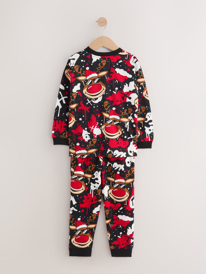 Red/Black Single Jogger Christmas Pyjamas (3-16yrs)