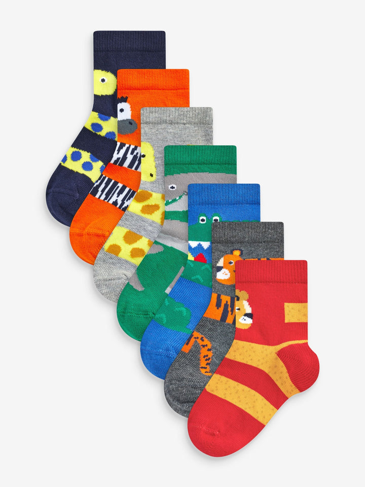 Red/Blue/Green Animal Cotton Rich Socks 7 Pack