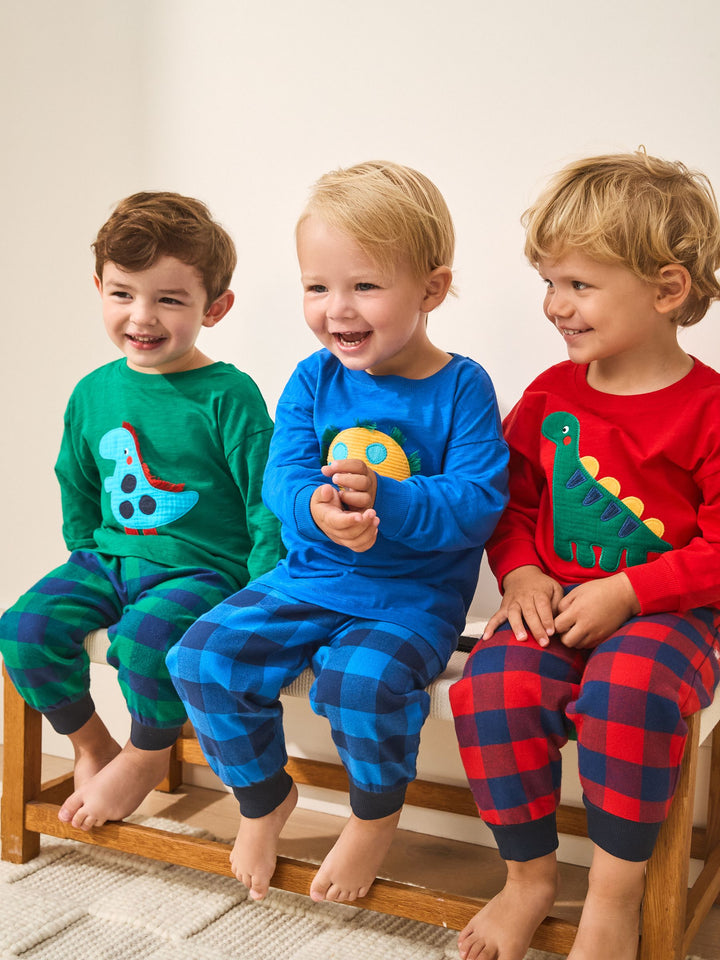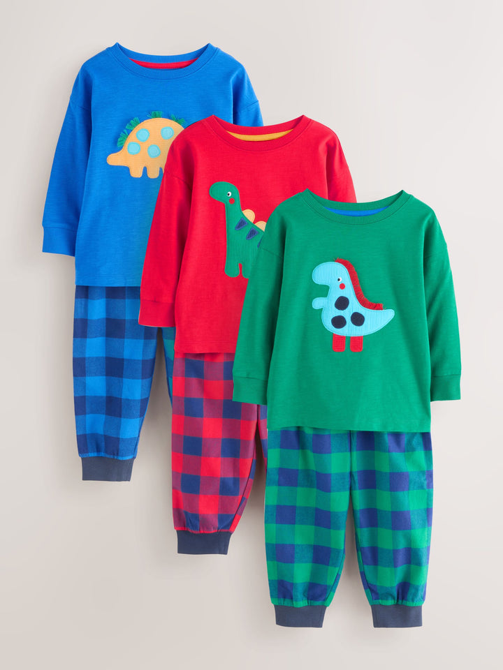 Red/Blue/Green Check Dinosaur Check Woven Bottom Pyjamas 3 Pack (9mths-12yrs)