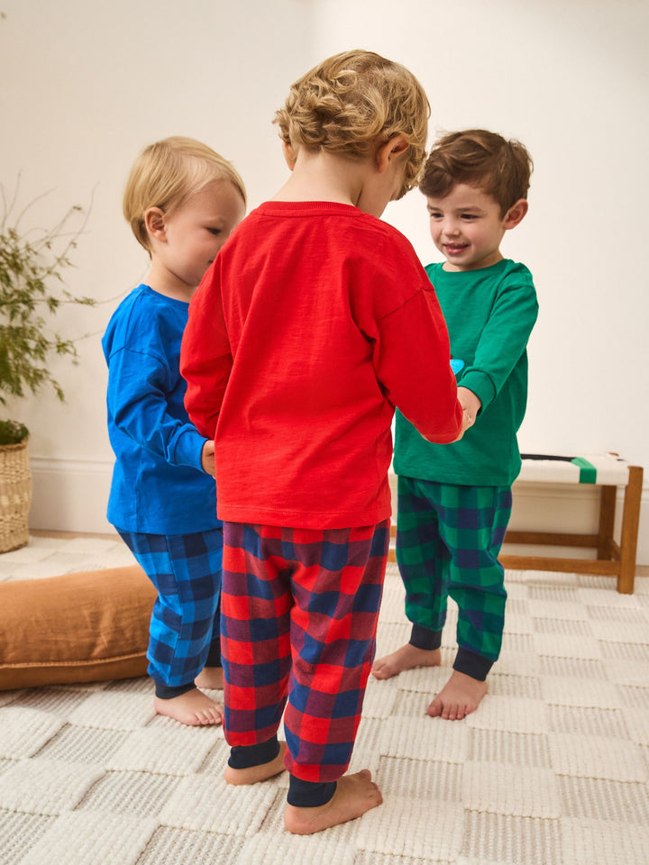 Red/Navy/Blue Vehicle Check Woven Bottom 100% Cotton Pyjamas 3 Pack (9mths-8yrs). 3 x Pyjama Top and 3 x Pyjama Bottom 100% Cotton. Country of Origin: Bangladesh Warning: Keep away from fire and flames.