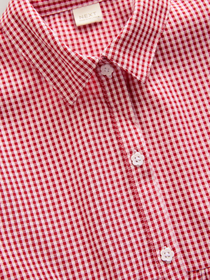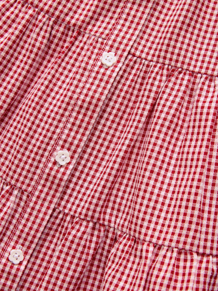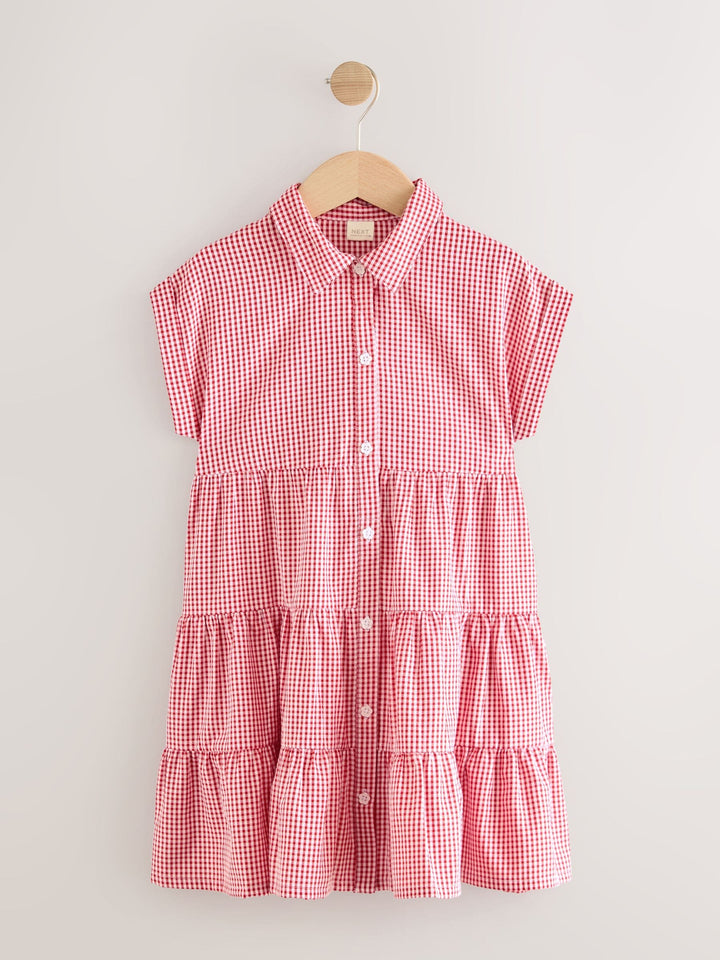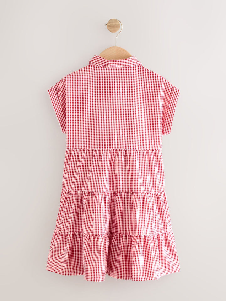 Red Cotton Rich School Gingham Tiered Shirt Collar Dress (3-14yrs)