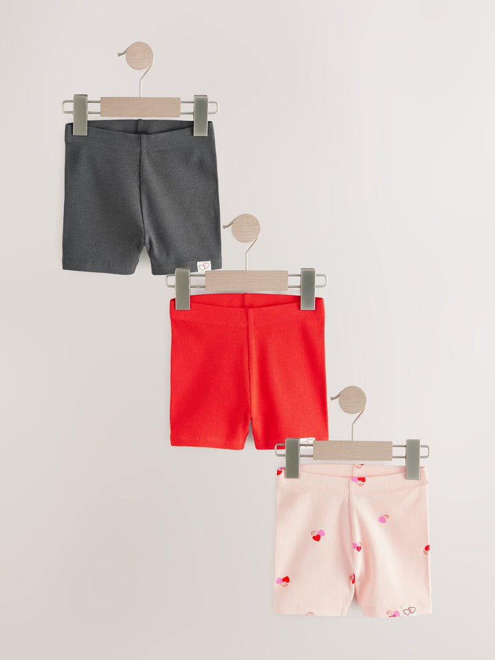 This 3-pack of shorts are perfect for an easy summer outfit, made from a soft cotton-rich fabric with added stretch, a ribbed texture and a mix of plain and heart designs, finished with an elasticated waistband. 3-pack Cotton-rich blend Ribbed texture Plain and heart designs Machine washable. 3 x Shorts 95% Cotton, 5% Elastane. Country of Origin: Bangladesh