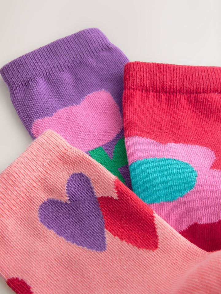 This 3 pack of cotton rich socks features fun flower and heart designs. In an ankle length with added stretch, they add the perfect pop of print to your look. Biome treatment has been applied to sizes 6-8.5 upwards to minimise odours and added freshness. Pack of 3 Cotton rich Ankle length Biome treatment applied to sizes 6-8.5 upwards This product contains the biocide linseed oil Machine washable. 3 x Socks 77% Cotton, 21% Nylon, 2% Lycra® Elastane. Country of Origin: Turkey
