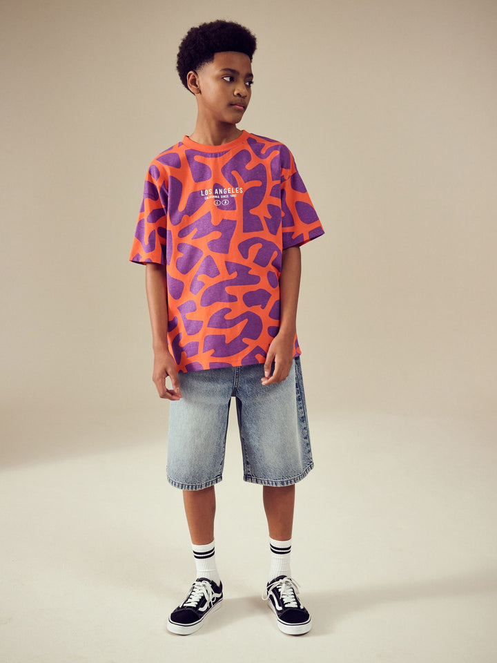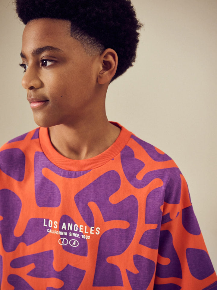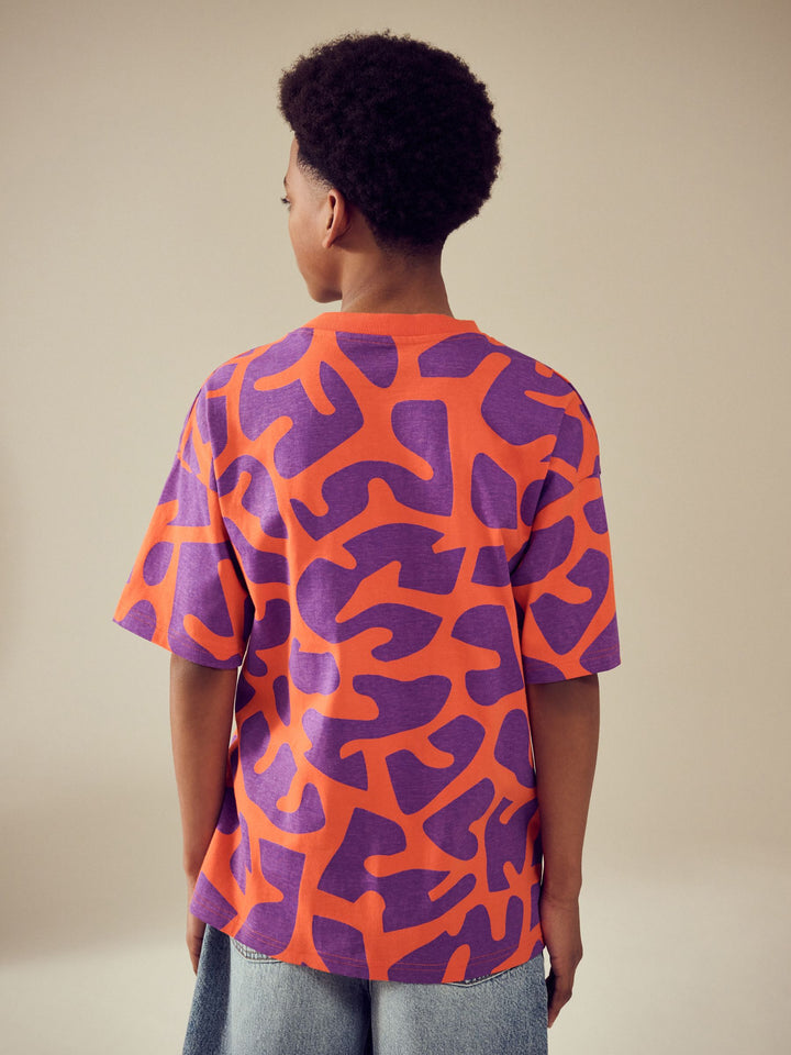 Amp up their casual looks with this red/purple relaxed fit t-shirt. In pure cotton, this short sleeve tee is coated in an all-over print with a graphic chest design on the front. 100% cotton Relaxed fit All-over print Graphic design Machine washable. 100% Cotton. Country of Origin: India