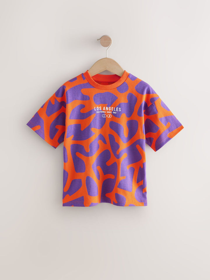 Red/Purple Relaxed Fit Short Sleeve All-Over Print 100% Cotton T-Shirt (3-16yrs)