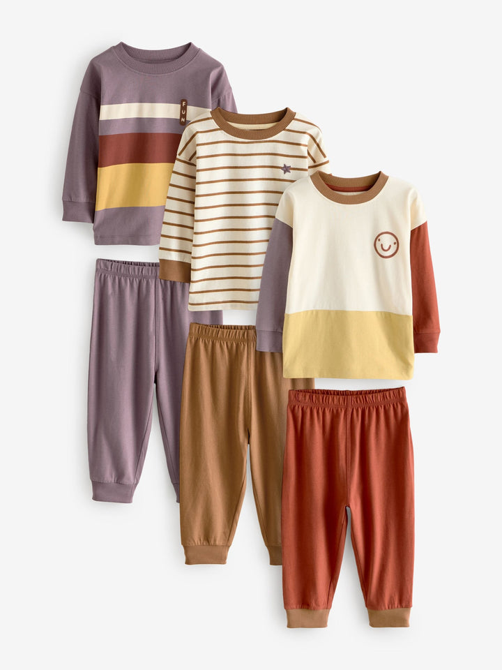 Machine washable. 3 x Pyjama Top and 3 x Pyjama Bottom 100% Cotton. Country of Origin: Bangladesh Warning: Keep away from fire and flames.