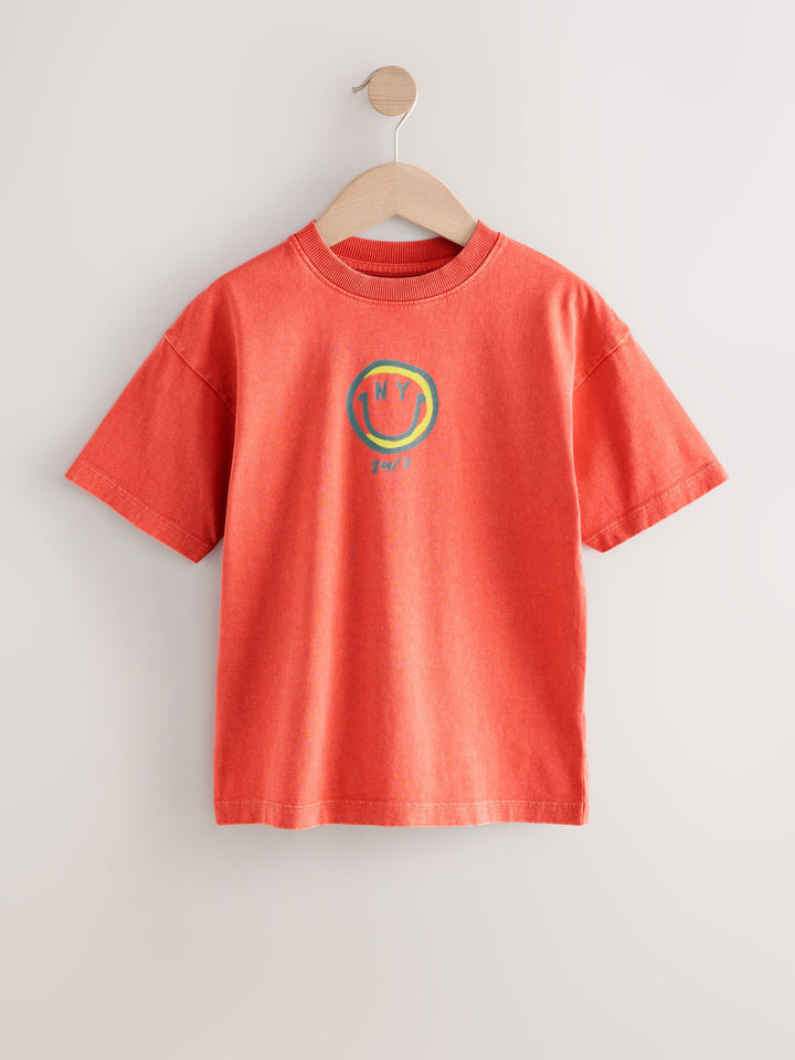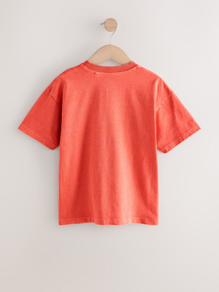 Red Relaxed Fit Washed Short Sleeve Graphic Print 100% Cotton T-Shirt (3-16yrs)