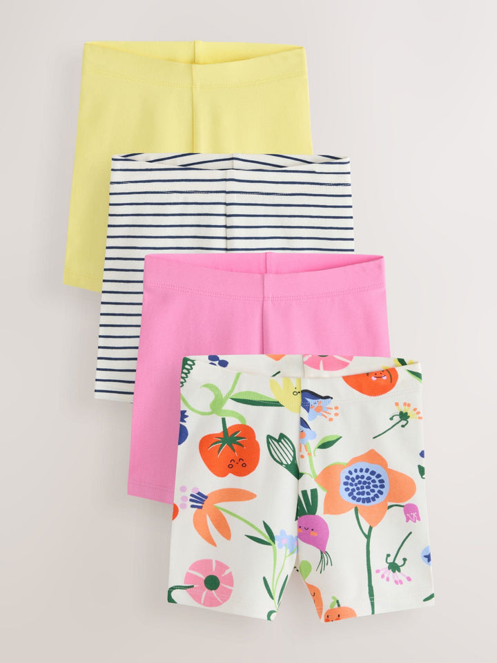Made from a cotton-rich blend and in a handy 4-pack, these shorts are a summer must-have, featuring an elasticated waistband for easy pull-on wear. The pack features floral, check and plain designs. 4-pack Cotton-rich fabric Elasticated waistband Machine washable. 4 x Shorts 92% Cotton, 8% Elastane. Country of Origin: Bangladesh