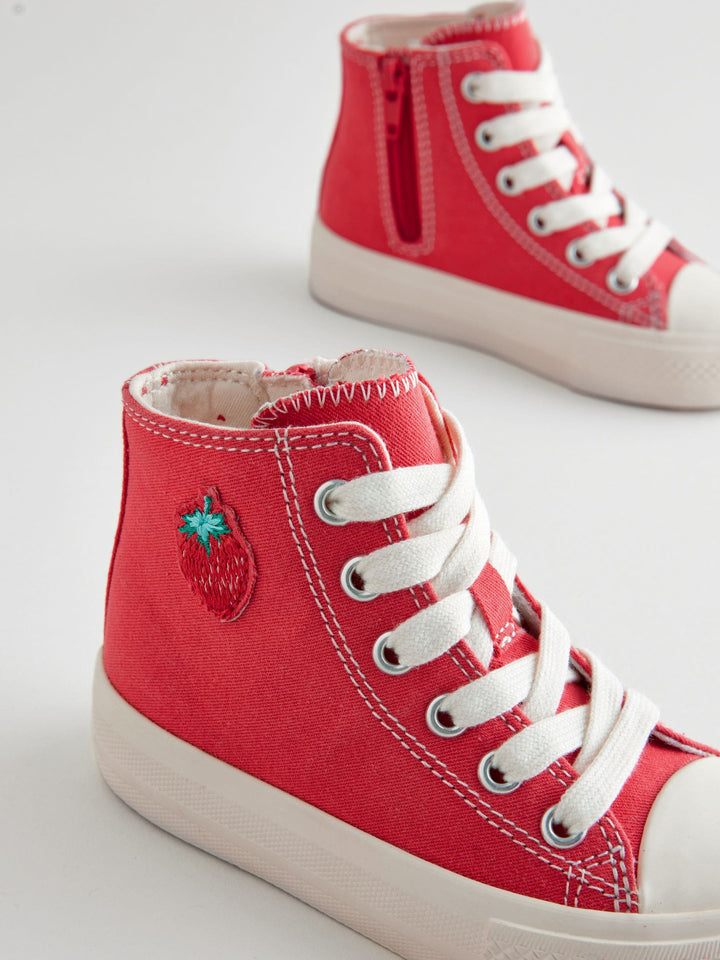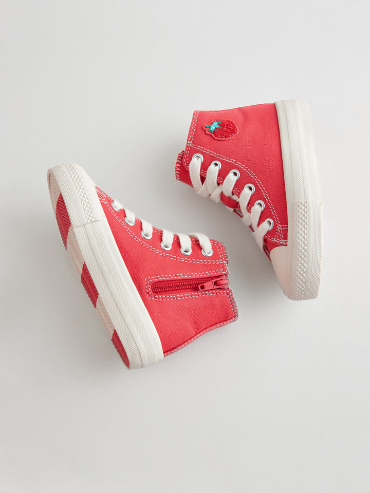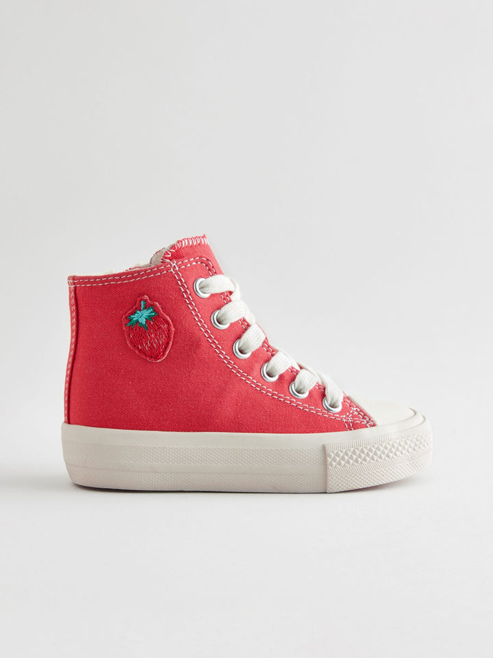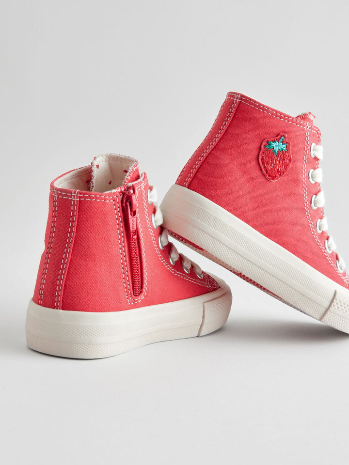 These high top red trainers have a strawberry design with a textile upper and a lace-up fastening, featuring a zip fastening on the inside for easy wear, a textile lining and a slip-resistant durable outsole. High top Textile upper Lace-up fastening Zip fastening Textile lining Slip-resistant outsole Upper - Textile, Lining & Sock - Textile, Sole - Other Materials. Country of Origin: Vietnam