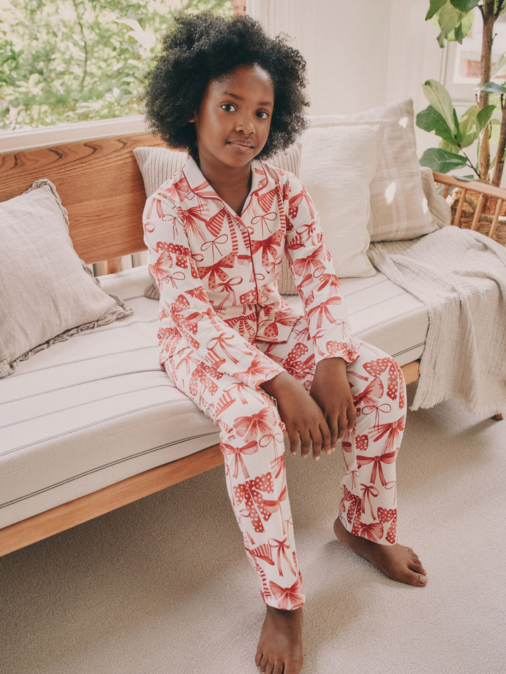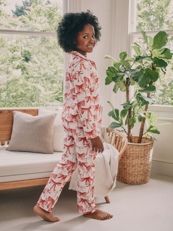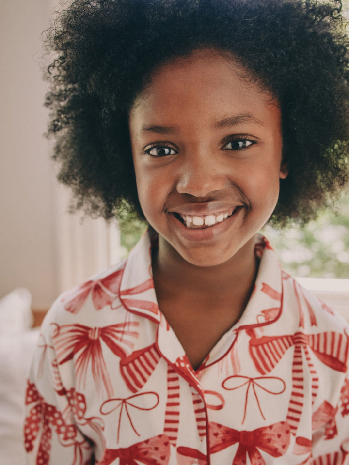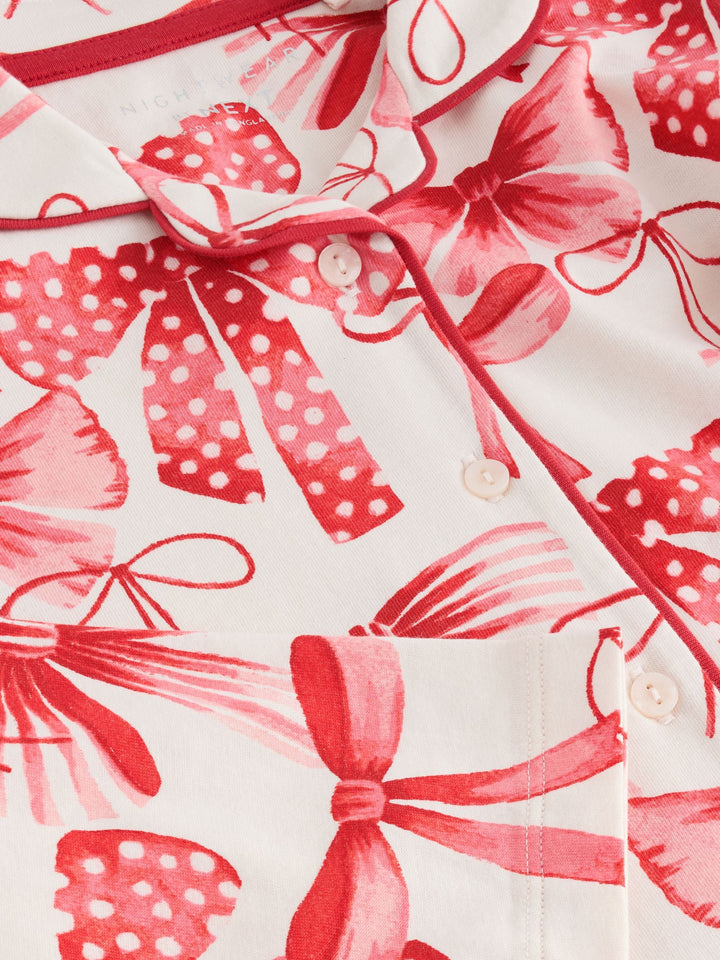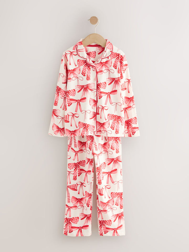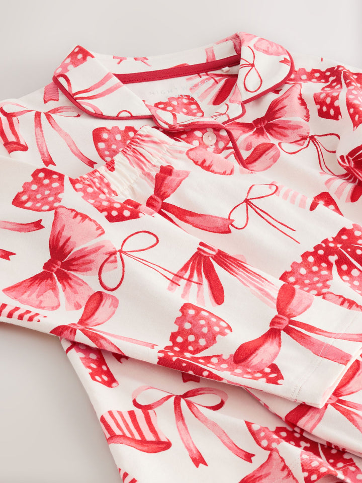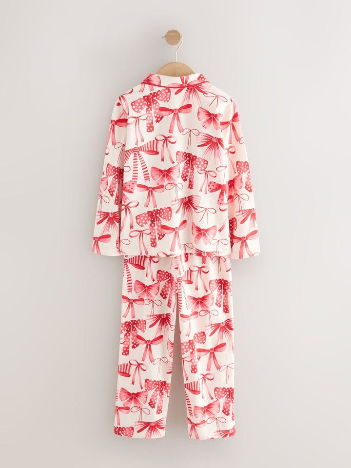 Red/White Bow Print Button Through Pyjamas (3-16yrs)