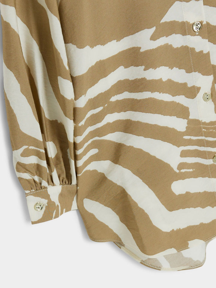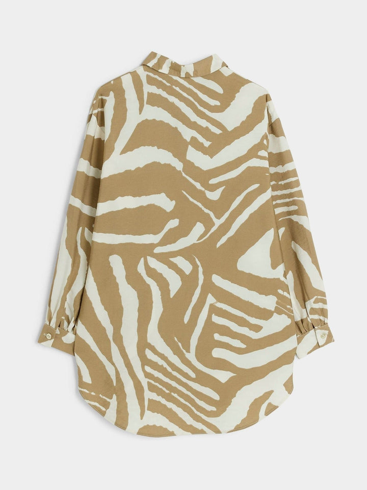 Zebra print Chest pocket Collared Long sleeves Button fastening Machine washable. 100% Cotton. Country of Origin: Great Britain