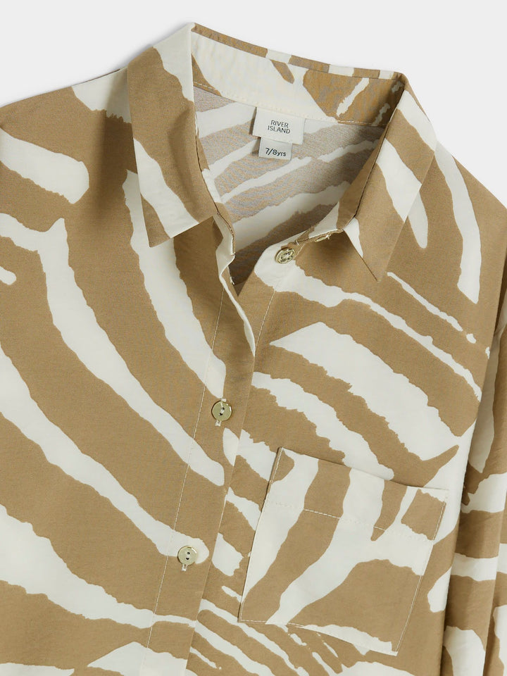 River Island Beige Girls Cropped Zebra Print 100% Cotton Shirt
