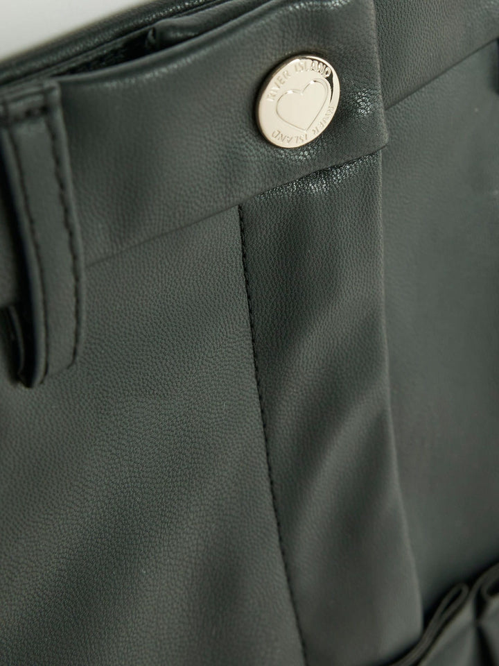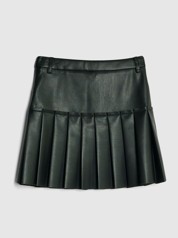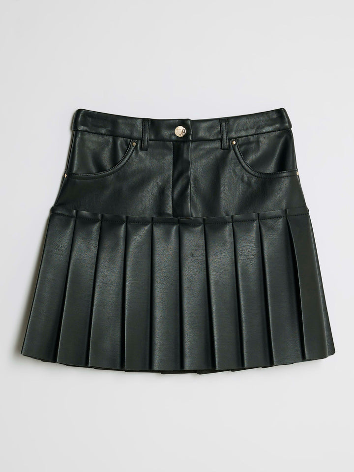 River Island Black Faux Leather Pleated Skirt