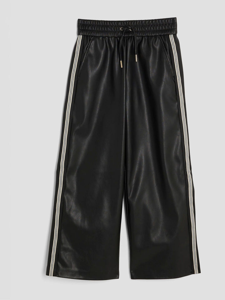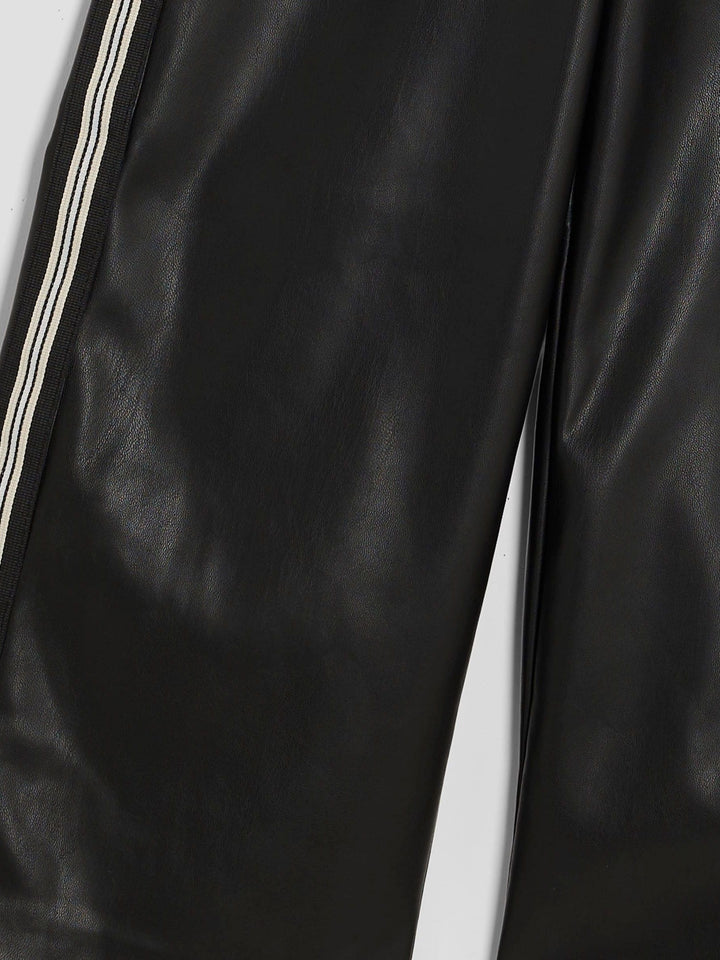 River Island Black Faux Leather Side Stripe Wide Leg Trousers