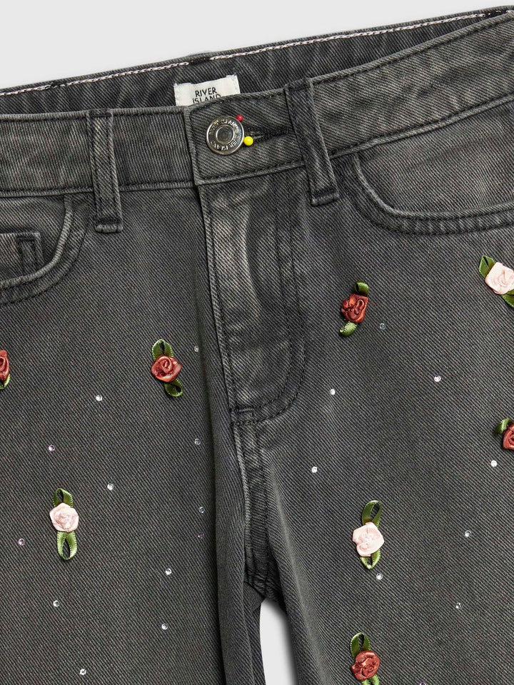 River Island Black Girls 3D Rose Wide Leg Jeans