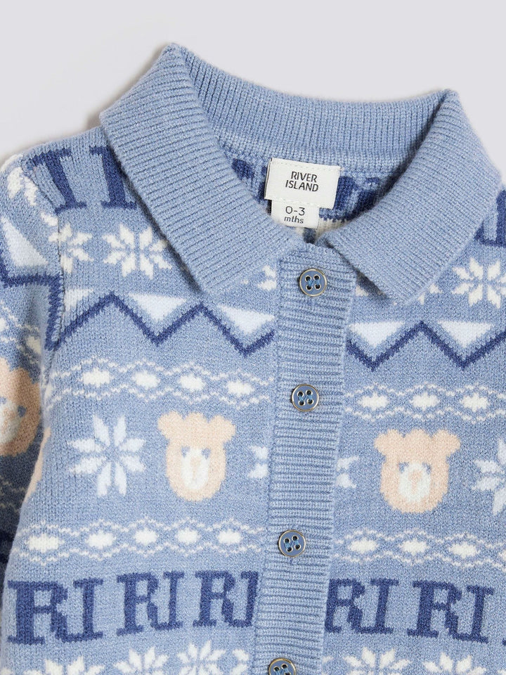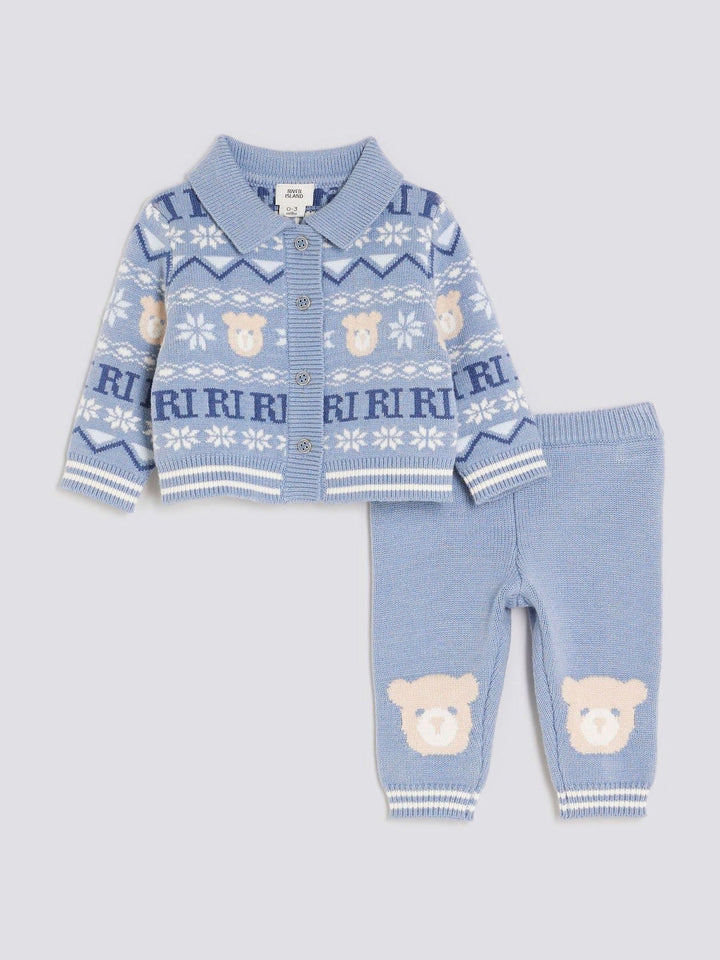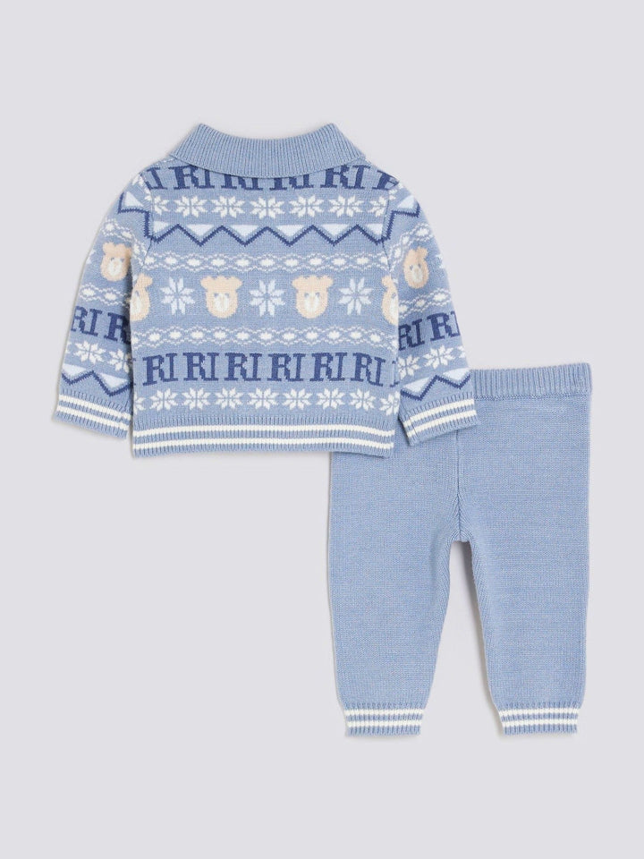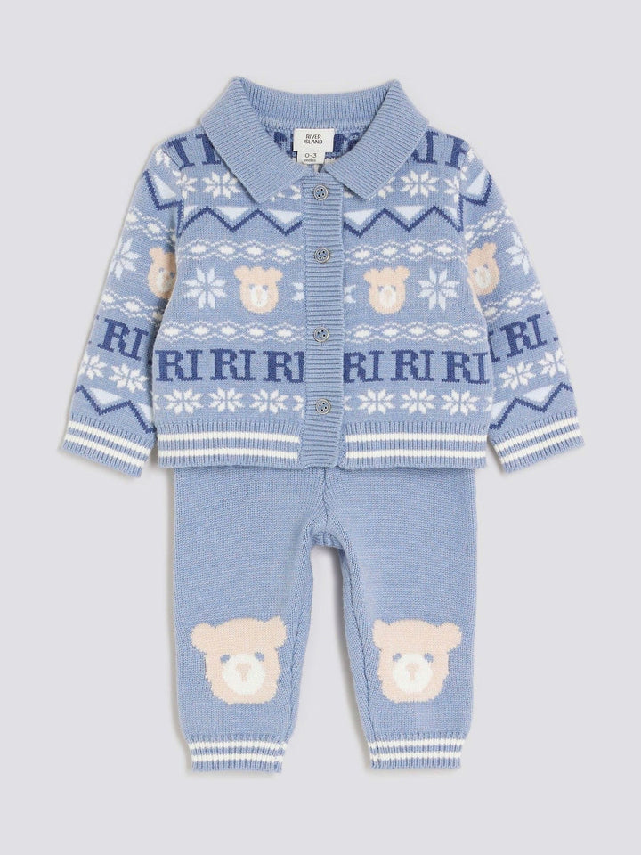 River Island Blue Baby Boys Bear Fairisle Cardigan Set
