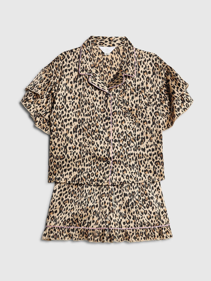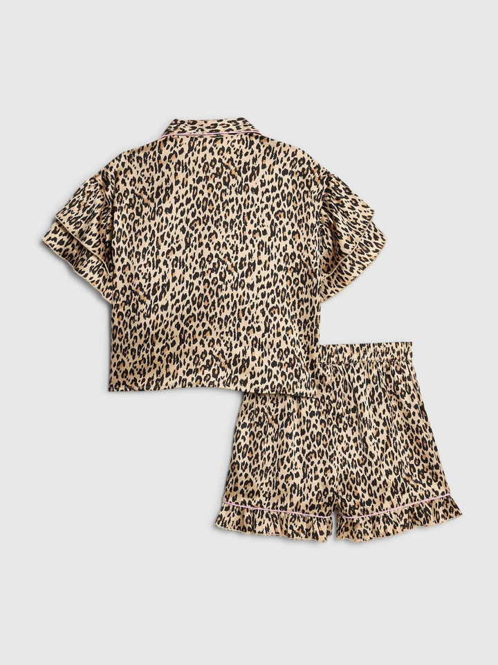 River Island Brown Girls Leopard Print Satin Short Pyjamas