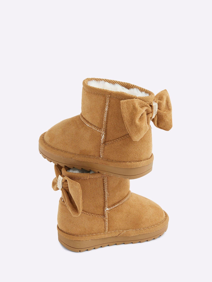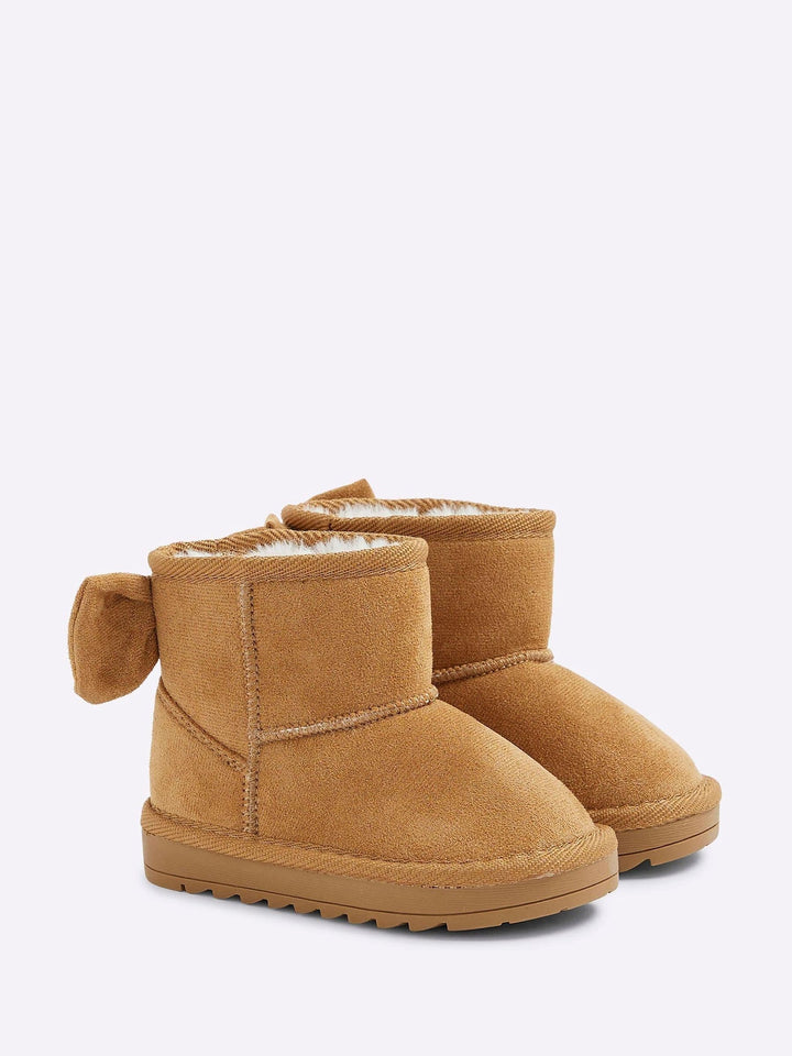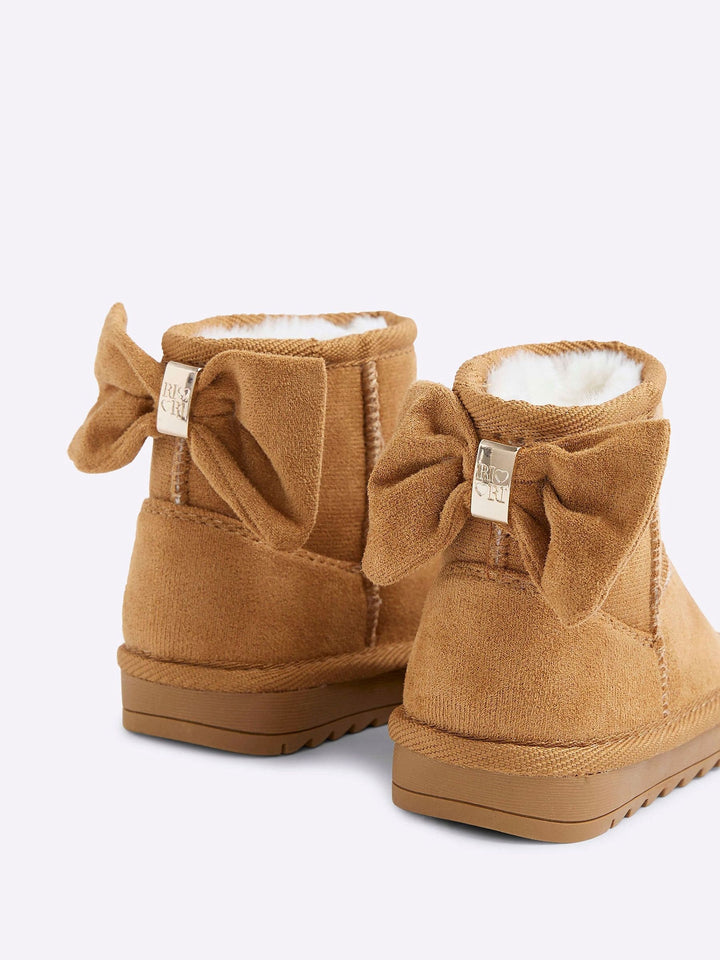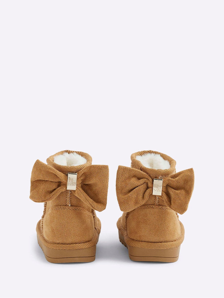 River Island Brown Girls Suedette Bow Fur Lined Boots