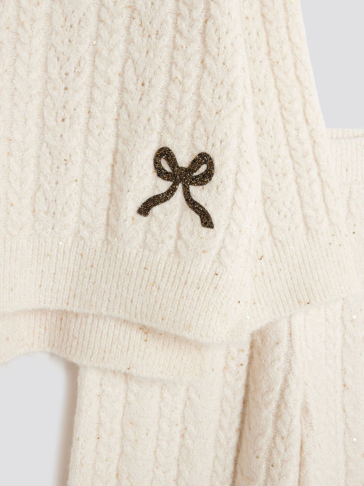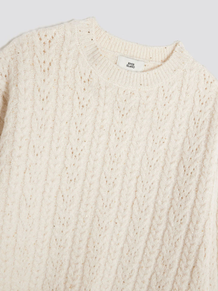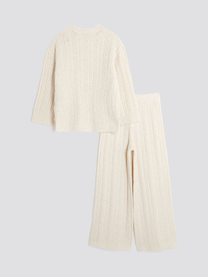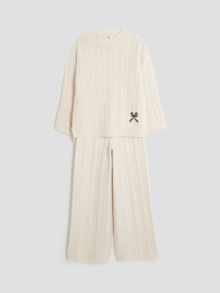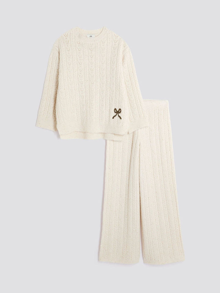 River Island Cream Cable Long Sleeve Jumper & Wide Leg Trousers Set
