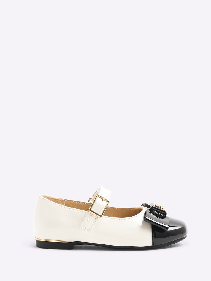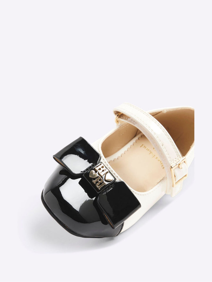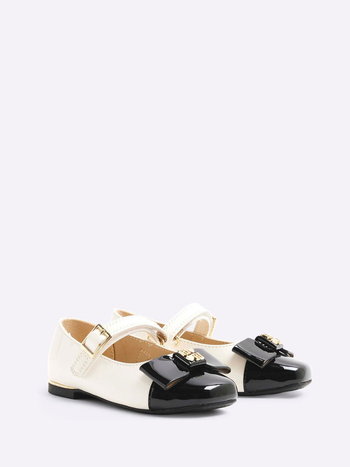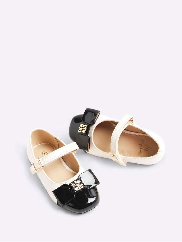 Monochrome pointed-toe shoes with buckle fastening and bow detail. Main - 100% PU. Sole - 100% Rubber. Country of Origin: China