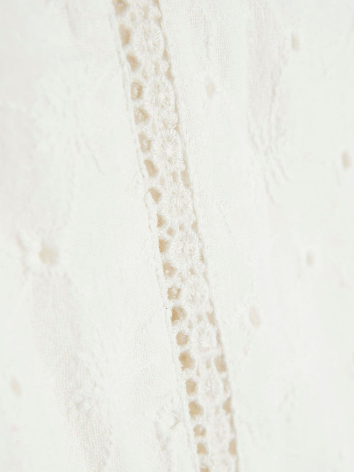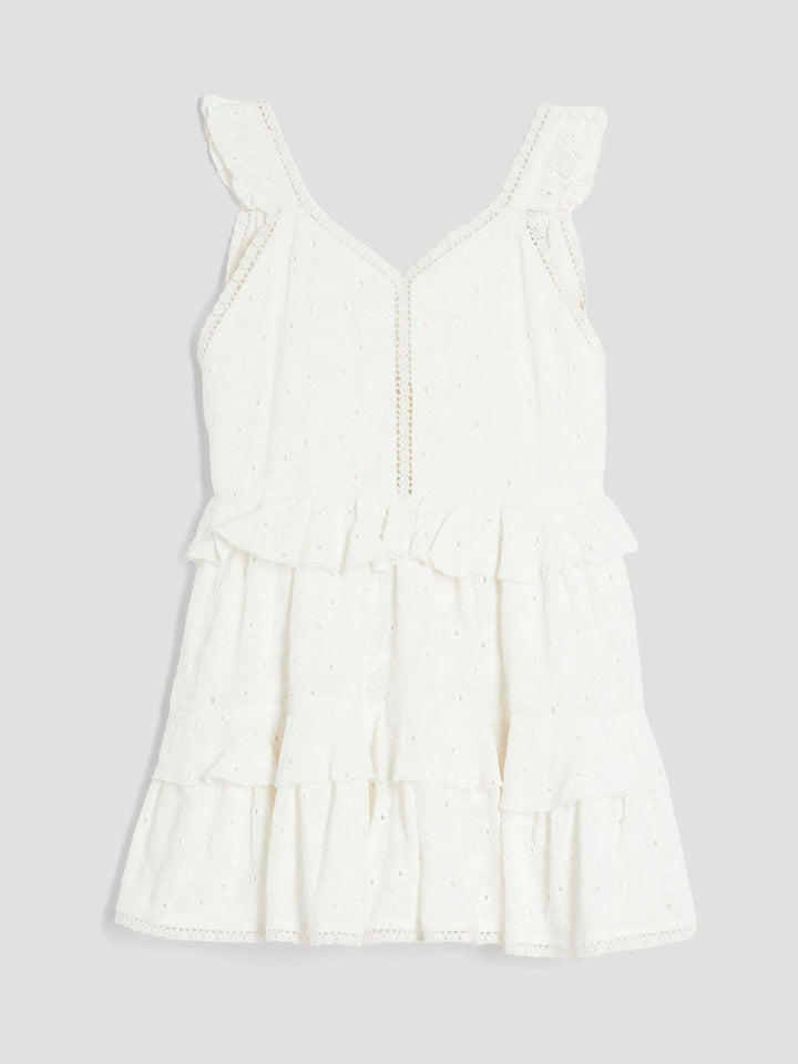 Plunge neckline Broderie style Tiered Strapped Sleeveless Washable. 100% Acrylic. Country of Origin: India