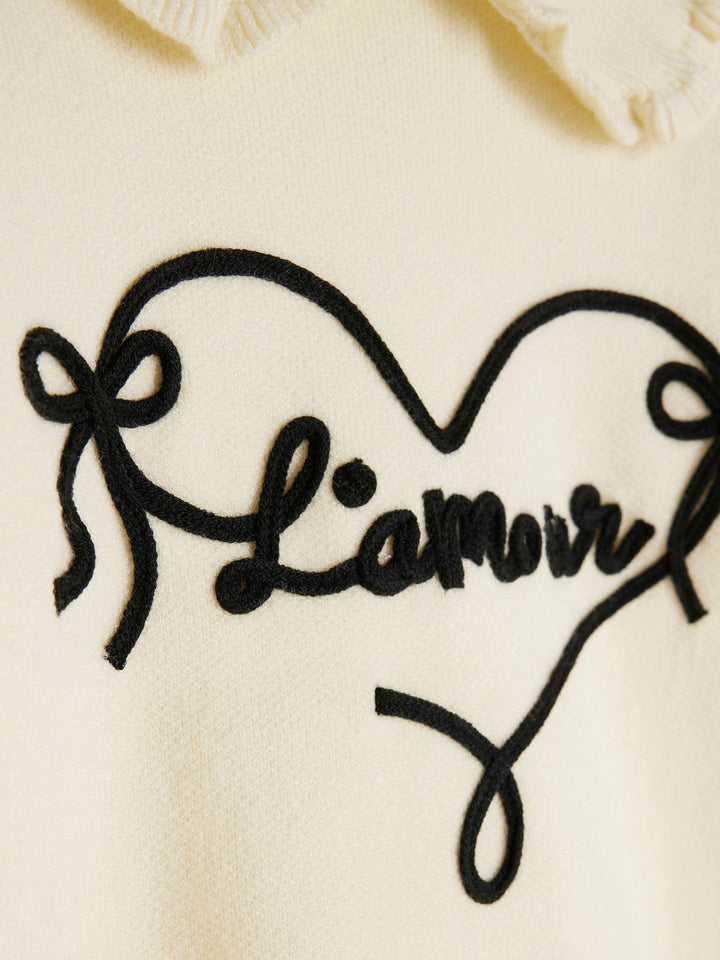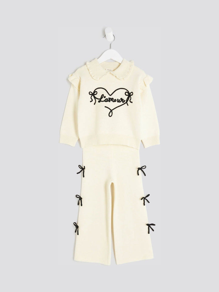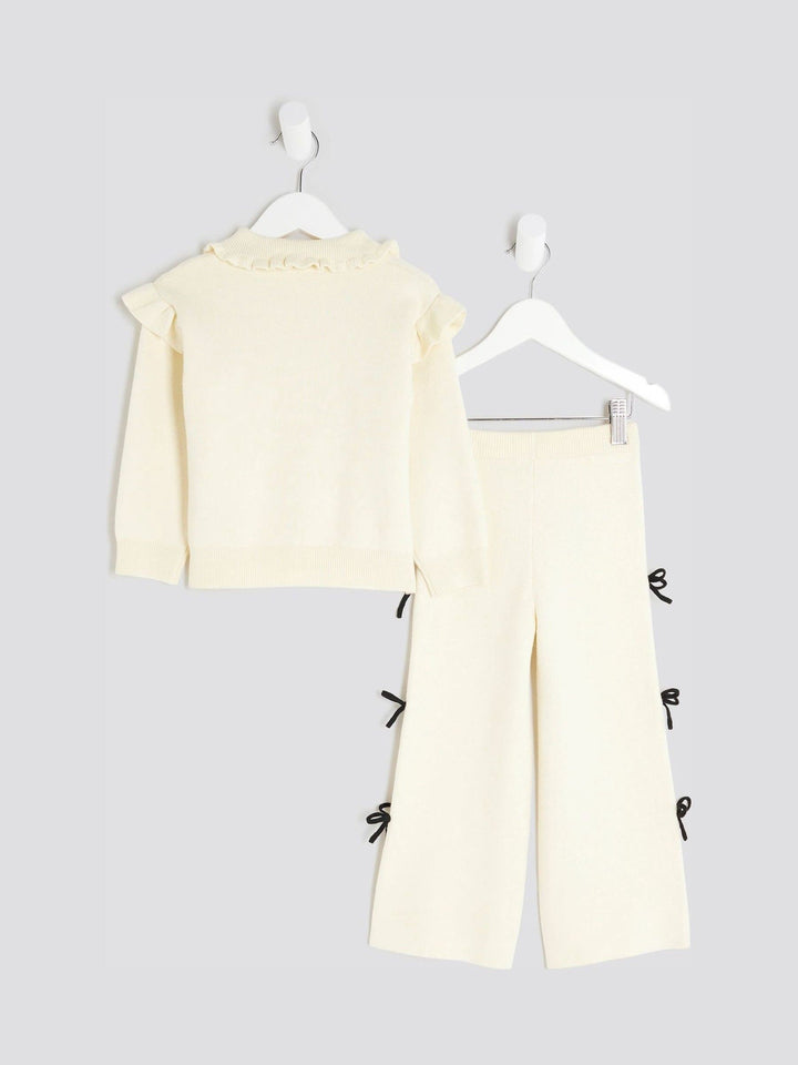 River Island Cream Younger Girls Knitted Frill Bow Jumper & Trousers Set