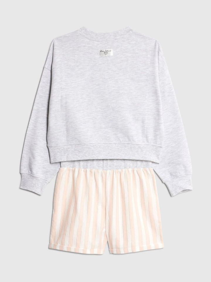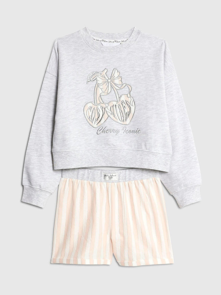 River Island Grey Cherry Sweat & Stripe Short Pyjamas Set