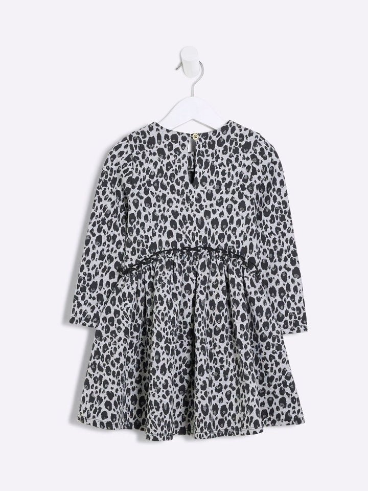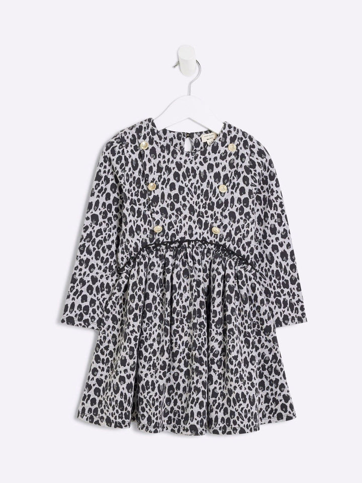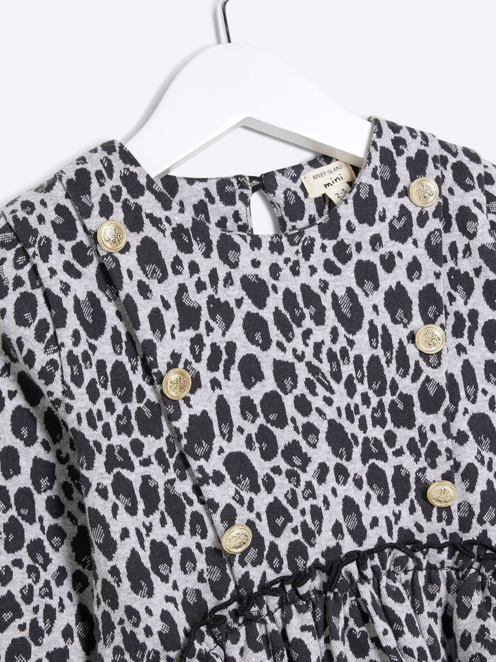 River Island Grey Girls Leopard Print Smock 100% Cotton Dress
