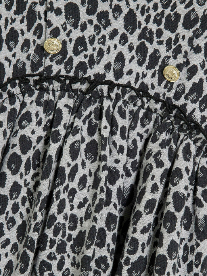 Leopard print Back buttoned fastening Long sleeve Imitated gold decoration Machine washable. 100% Cotton. Country of Origin: Tunisia