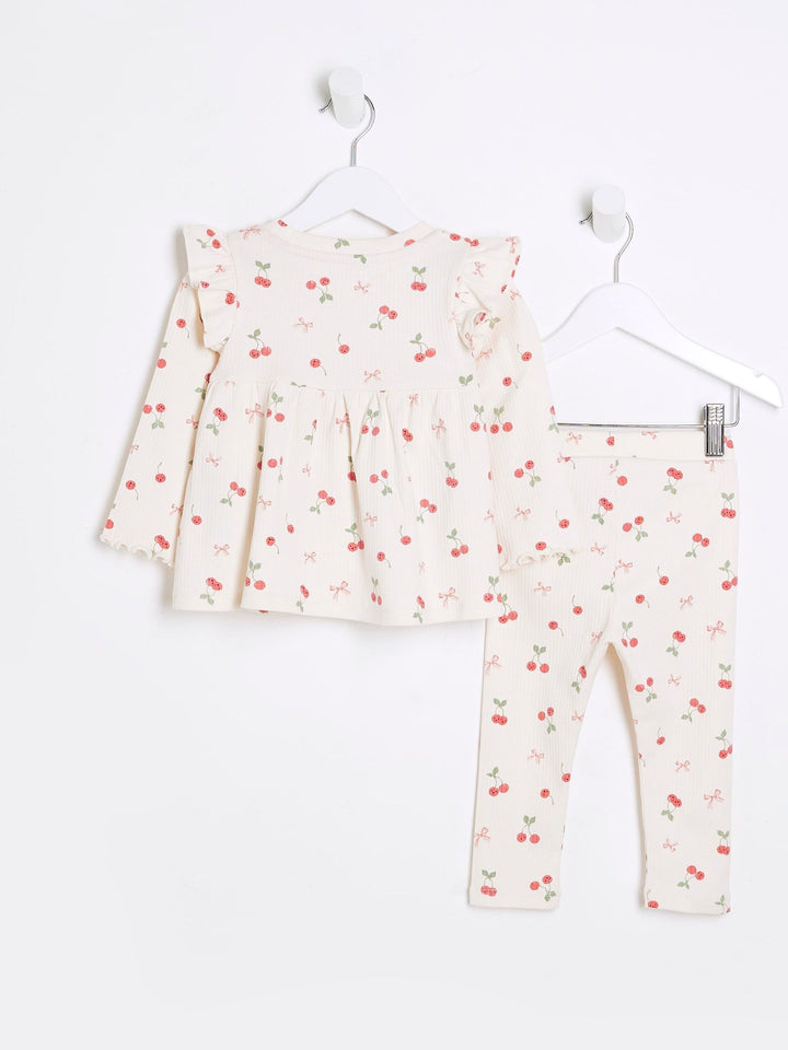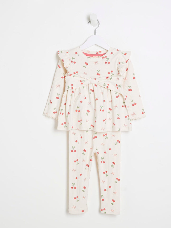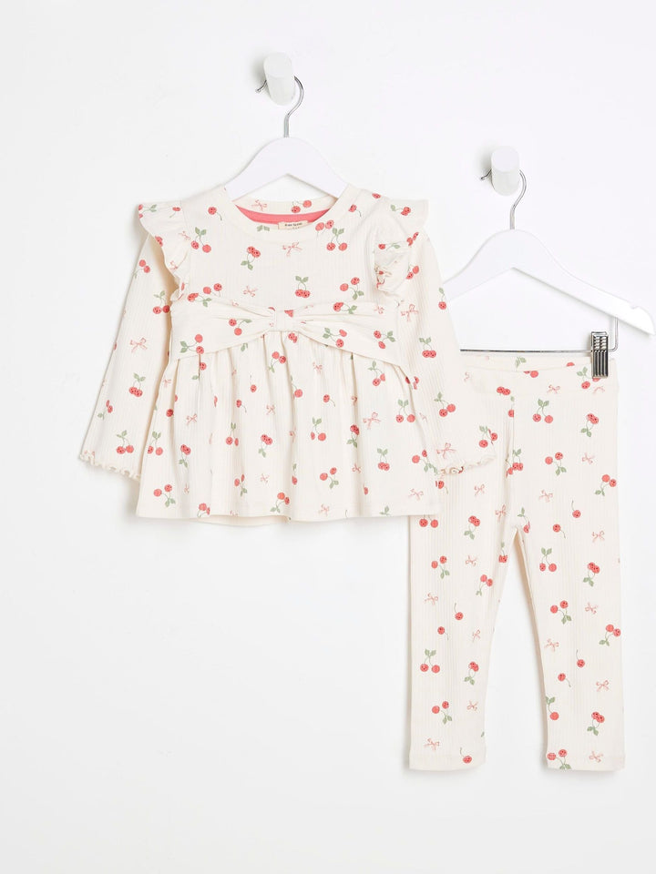 River Island Light Cream Bow Rib Peplum Top Set