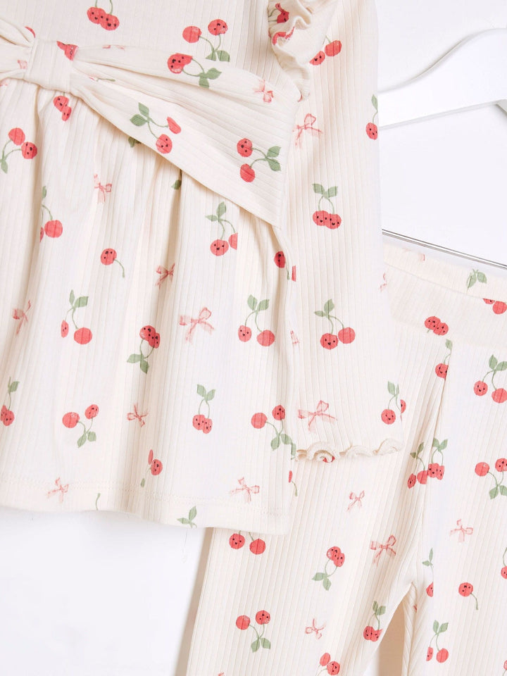 2-piece set Ribbed fabric Top: Crew neckline Frill detail Leopard bow Long sleeves Leggings: Leopard print Elasticated waist 95% Cotton, 5% Elastane. Country of Origin: Bangladesh
