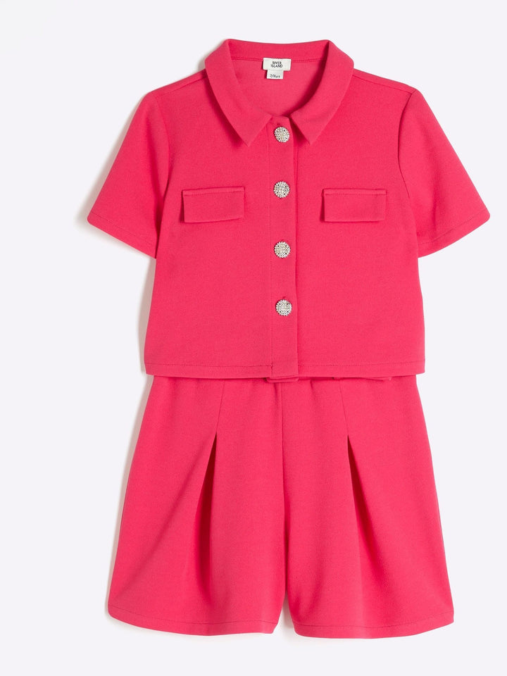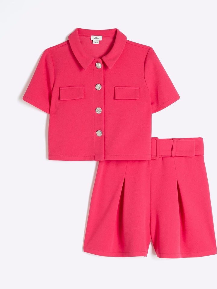 River Island Pink 100% Cotton Scuba Belted Shorts Set