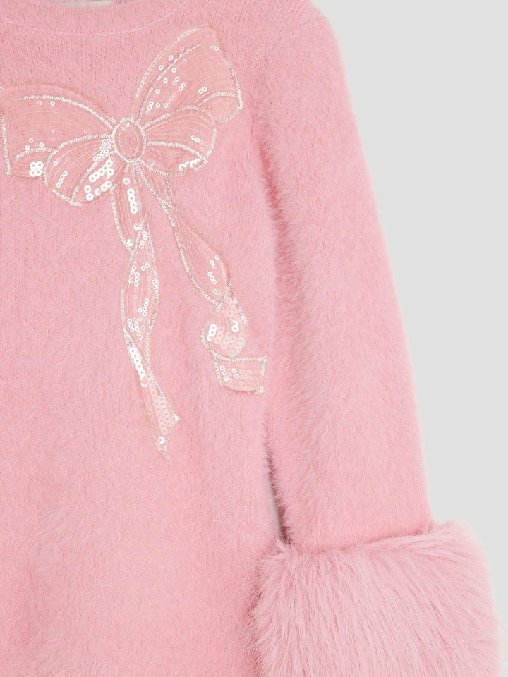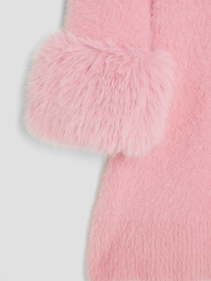 River Island Pink Girls Fur Cuff Knitted Bow Dress