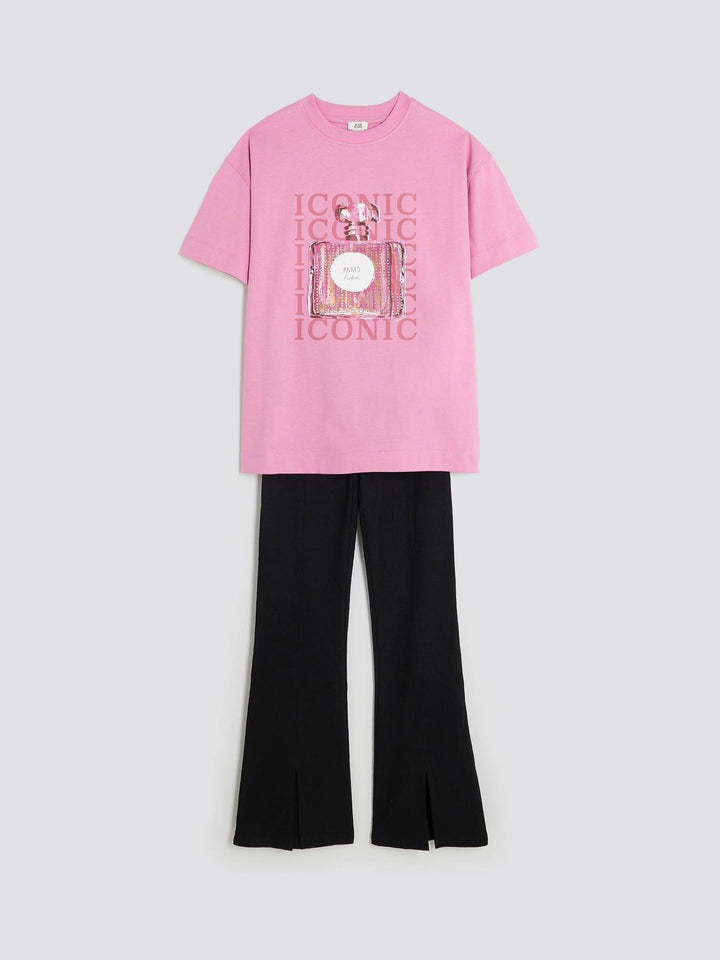 River Island Pink Girls Purfume T-Shirt and Kickflare Set