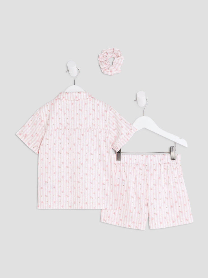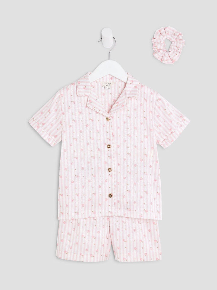 River Island Pink Girls Rosebud Stripe Satin Pyjamas