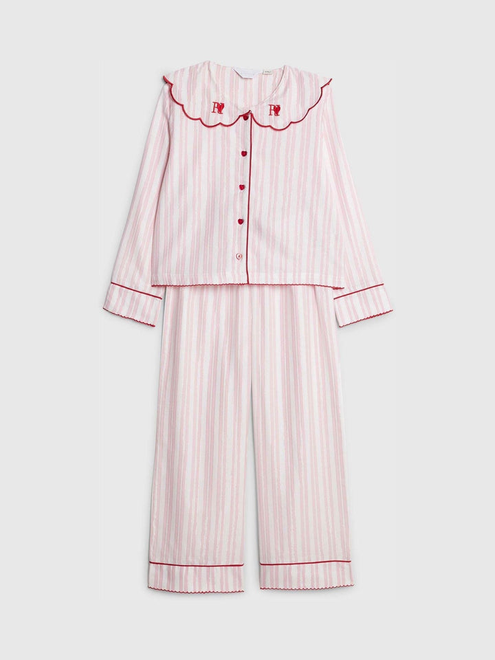 River Island Pink Long Sleeve Stripe Scallop Collar Pyjamas Set
