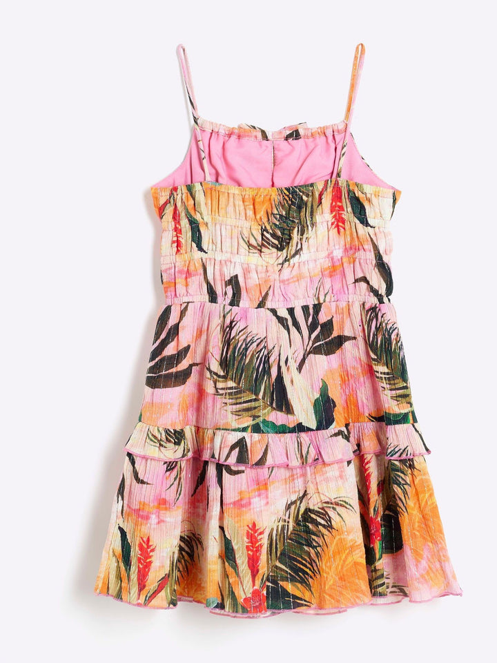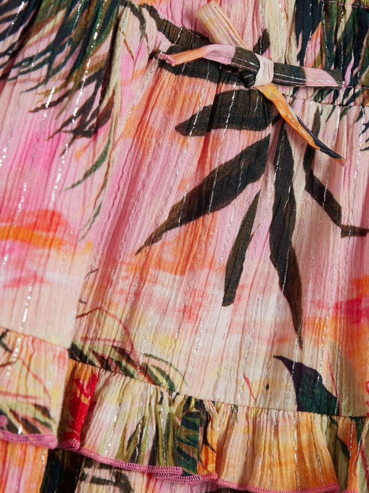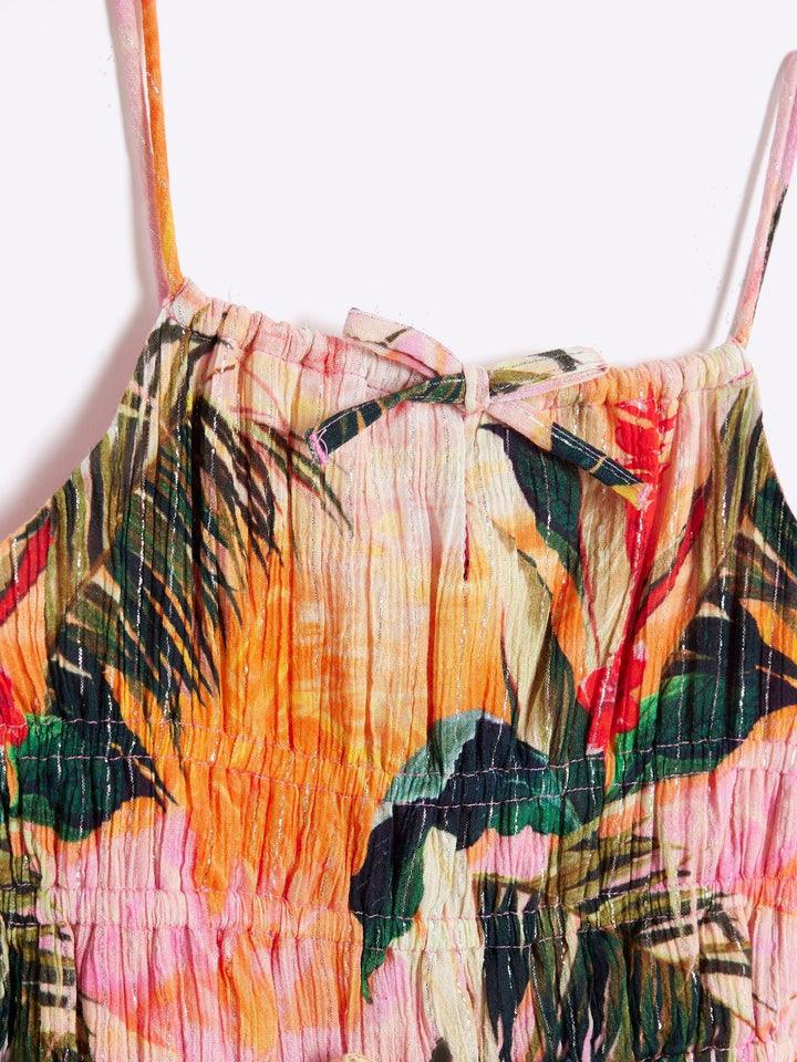 Orchid graphic Square neck Strapped Tiered detail Sleeveless Mini length 97% Cotton, 3% Metallised fibre. Country of Origin: India