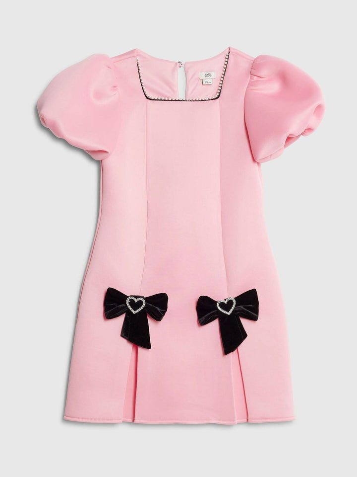 River Island Pink Puff Sleeve Bow Hem Scuba Dress