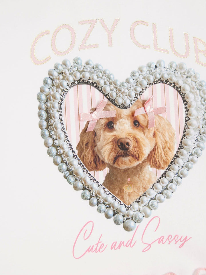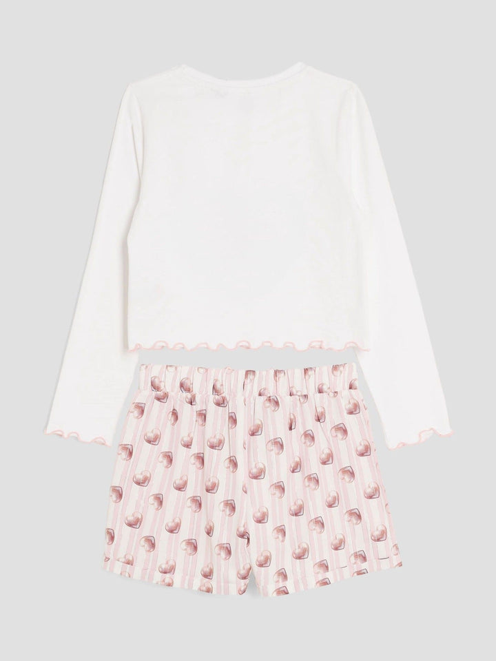 Set of 2 matching bow detail pyjama top. Crew neck. Puppy heart graphic. Long sleeves. Pyjama shorts. Heart print. Elasticated waist. Washable. Main 95% Cotton, 5% Elastane. Lining 98% Cotton, 2% Metallised fibre. Country of Origin: Great Britain