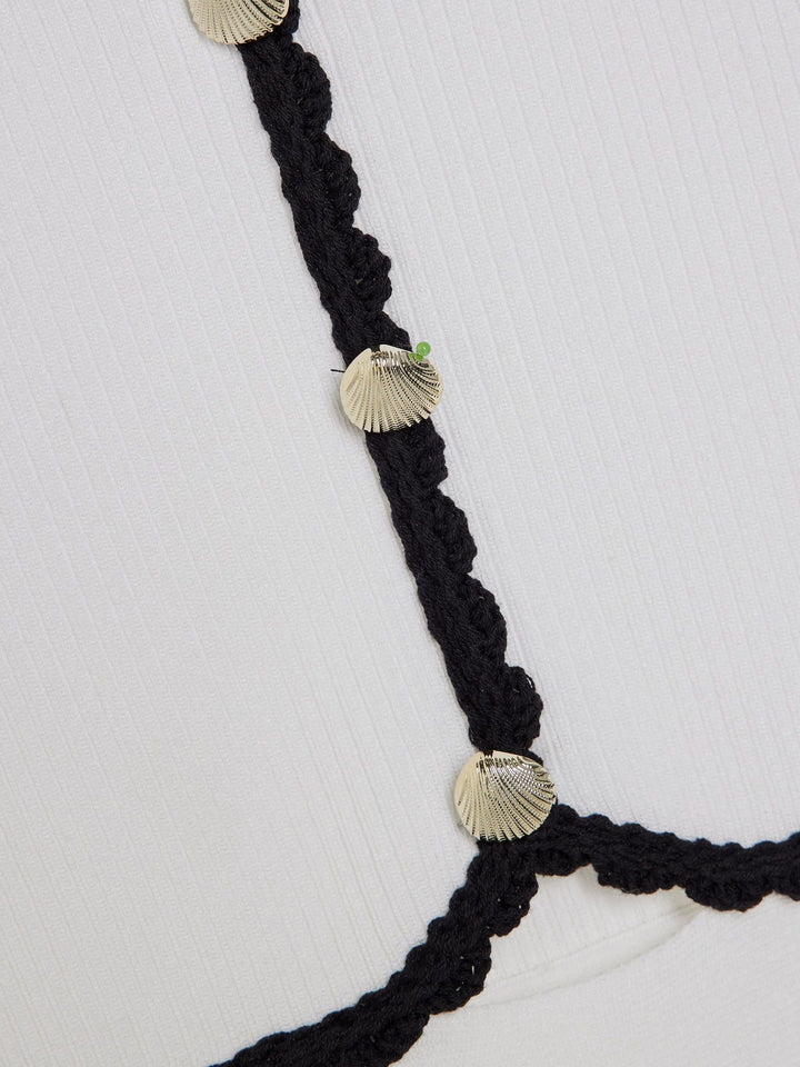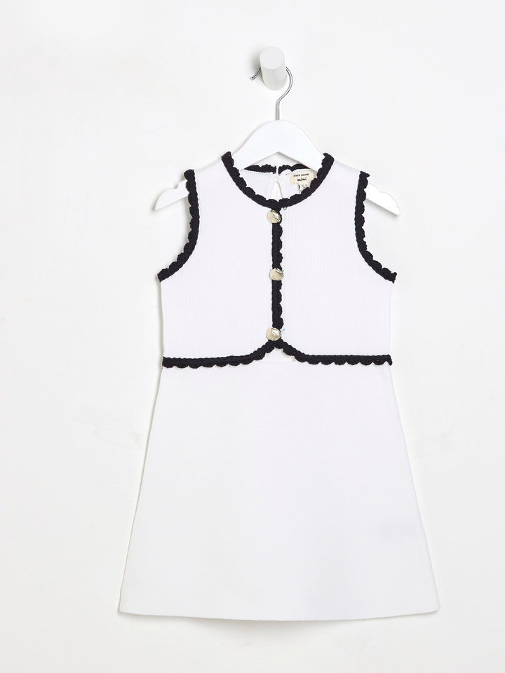 Knitted style Crew neck Buttoned fastening Sleeveless. Washable. 73% Polyester, 27% Viscose. Country of Origin: China