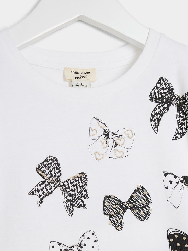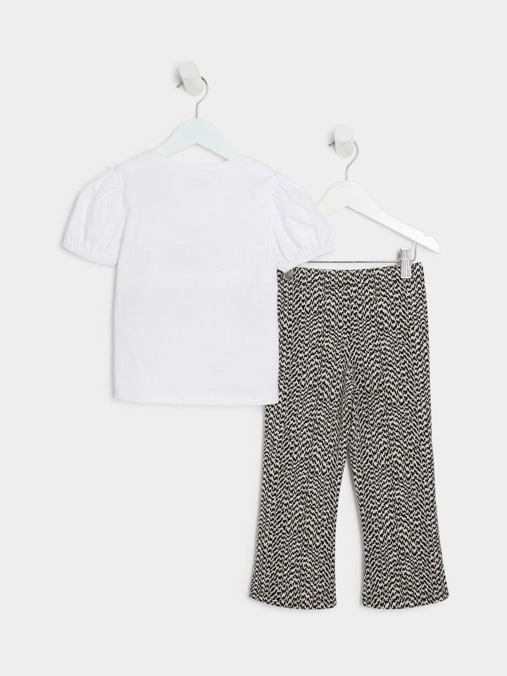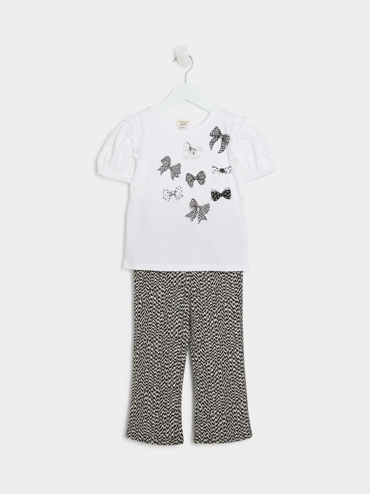 River Island White Girls Bow 100% Cotton T-Shirts and Kickflare Set
