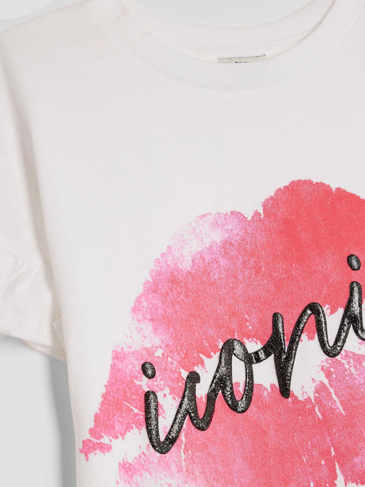 River Island White Girls Iconic Lips Frill T-Shirt