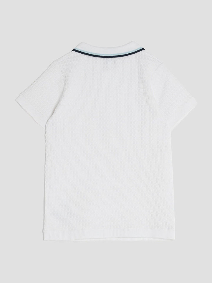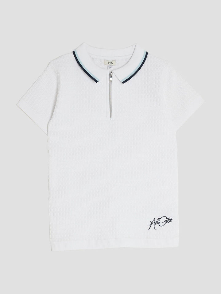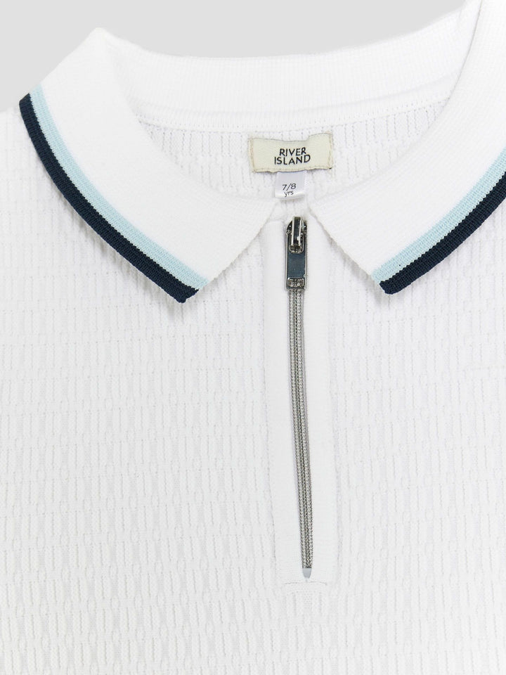 River Island White OB Zip Textured Polo Shirt