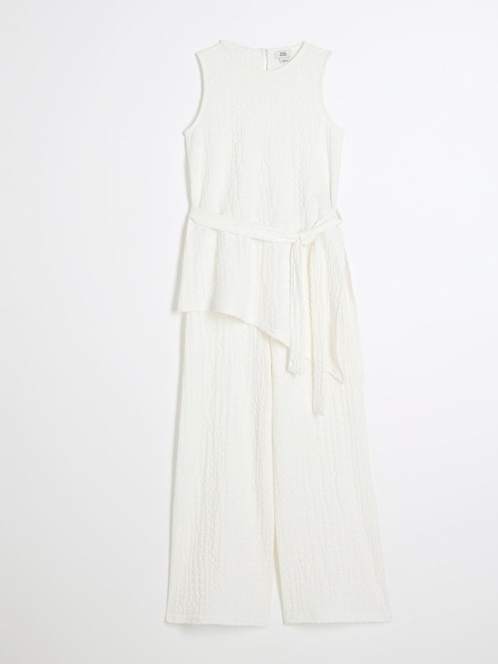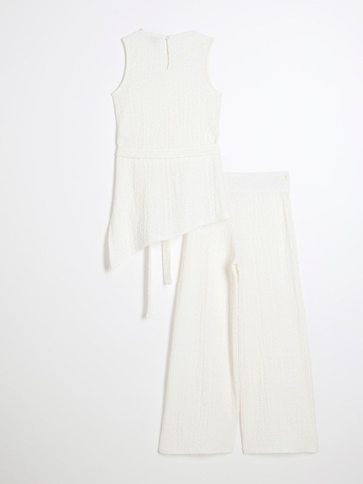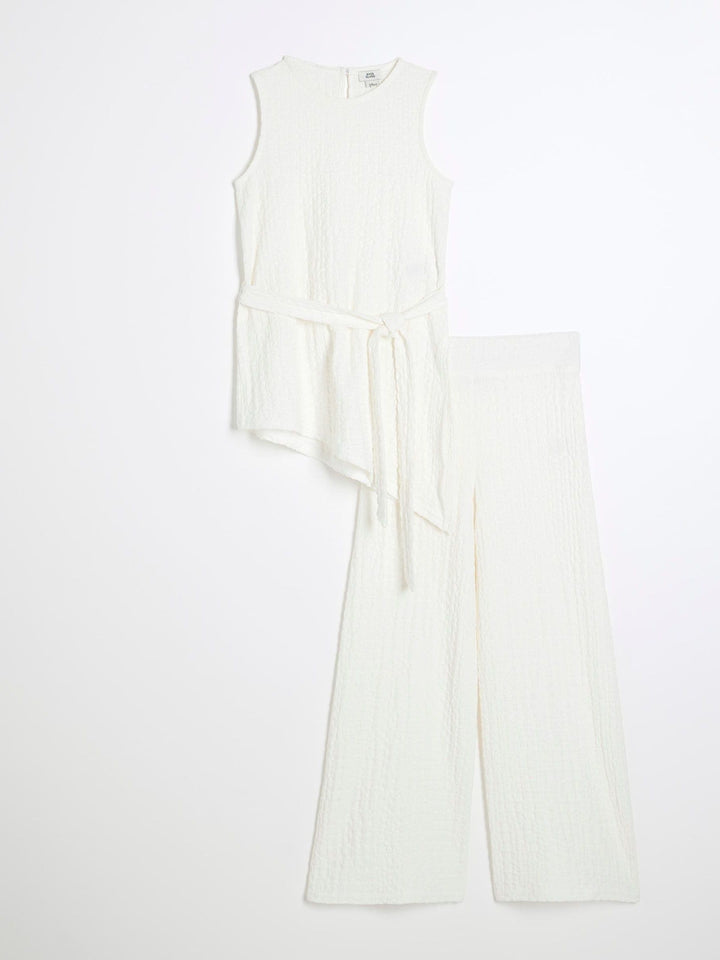 Set of 2 Tunic top: Crew neck Textured Tied detail Sleeveless Trousers: Elasticated waistband Machine washable. 100% Polyester. Country of Origin: China