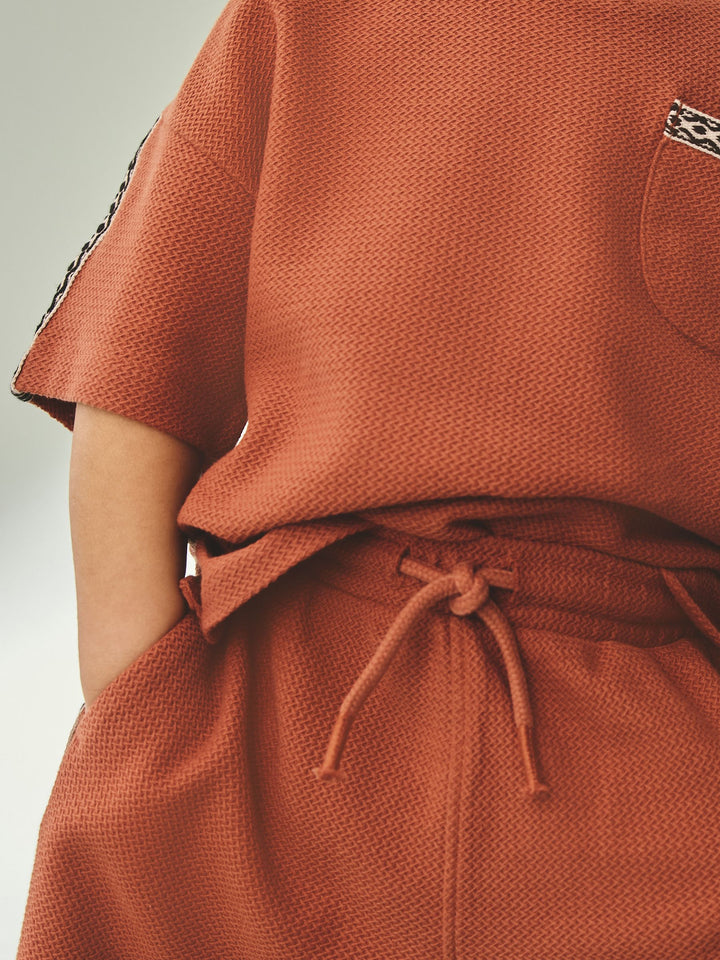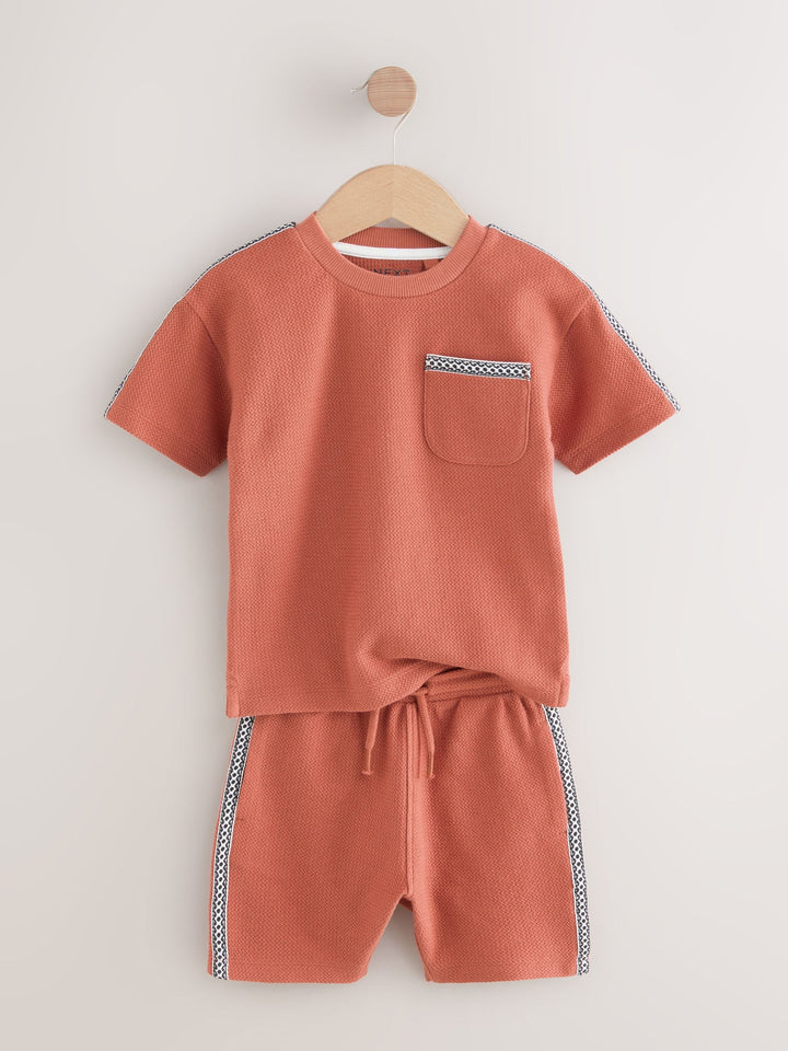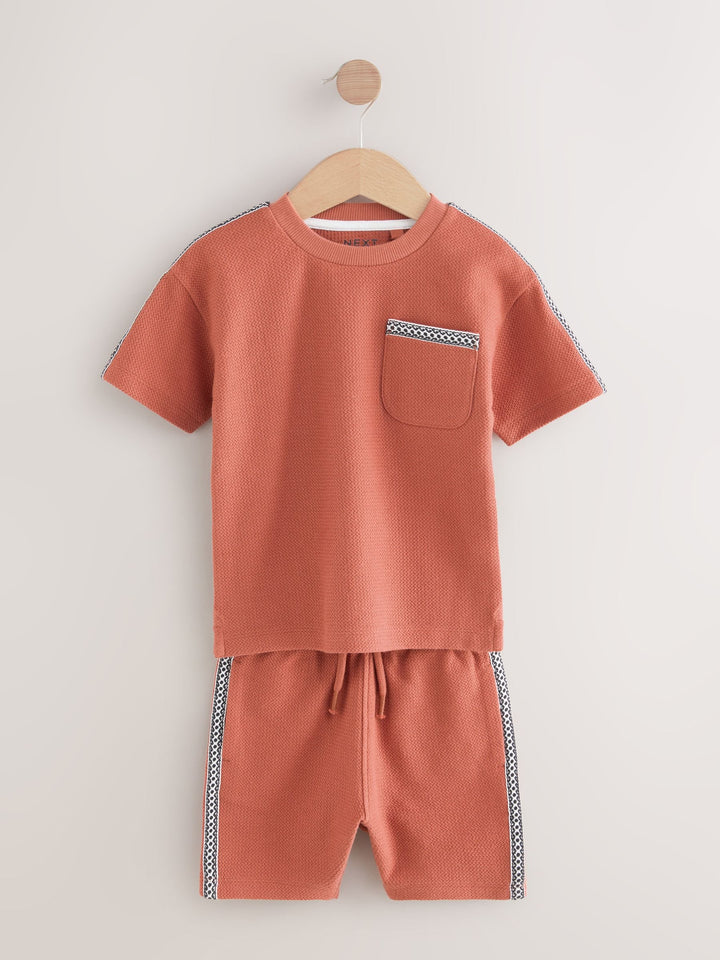 Rust Brown 100% Cotton Textured Pocket Tops & Shorts Set (3mths-7yrs)