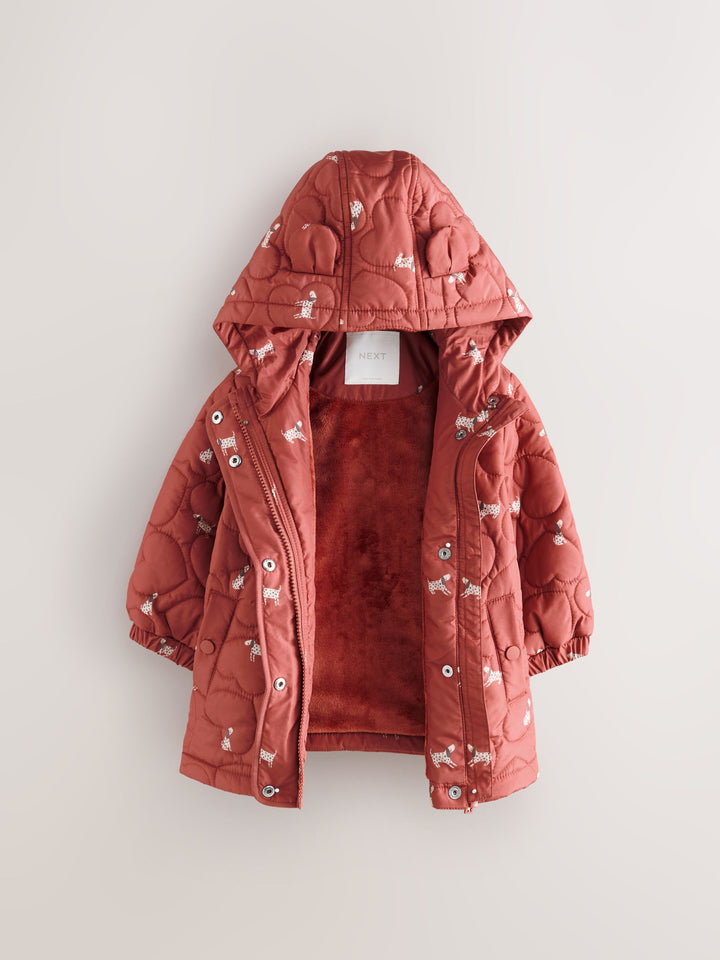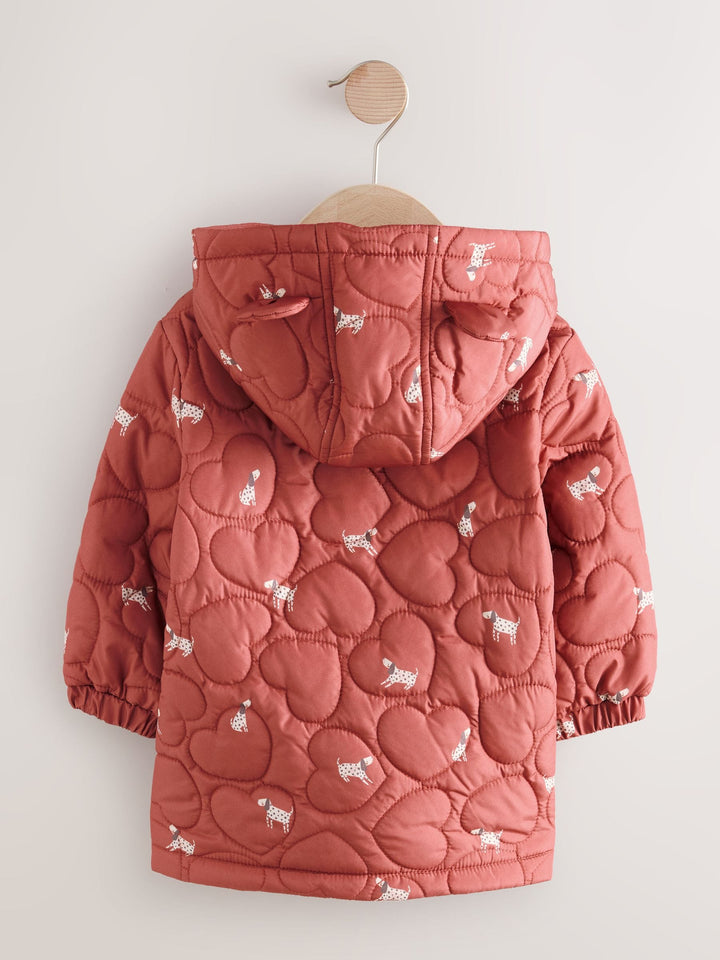 Rust Red Shower Resistant Heart Quilt Coat (3mths-7yrs)