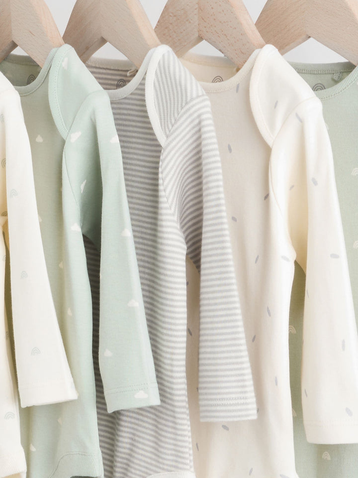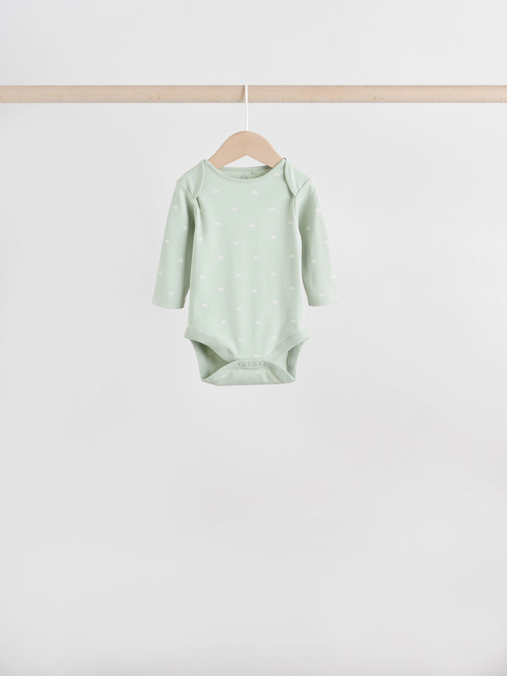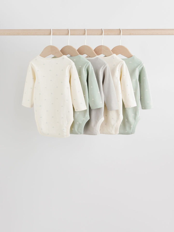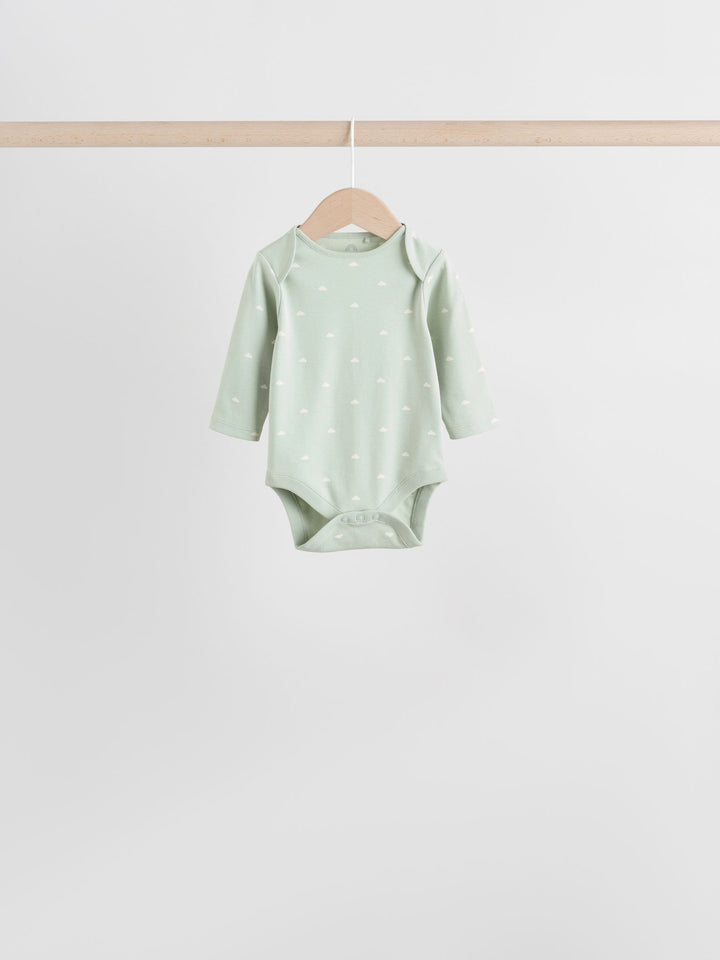 Sage Green Baby Long Sleeve Bodysuits 5 Pack